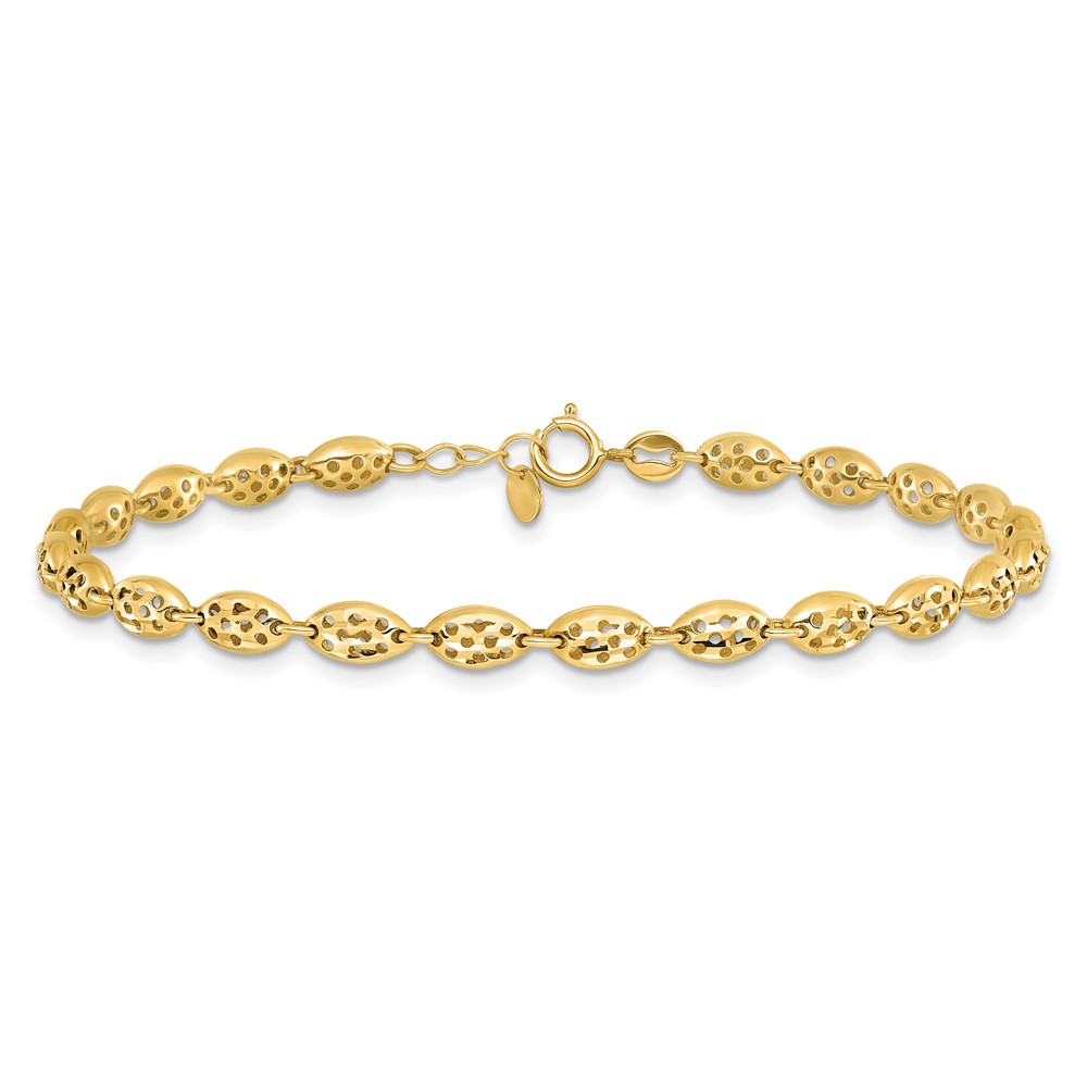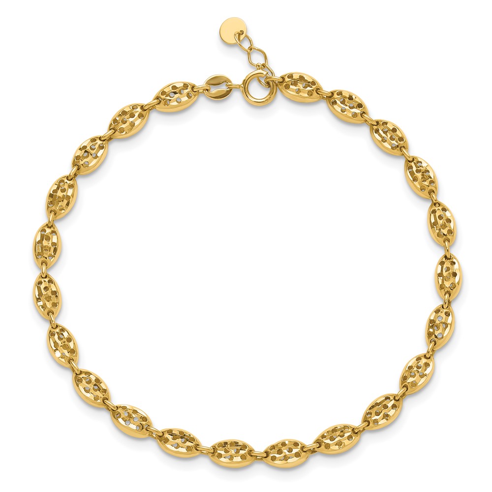 Leslie's 14K Polished and D/C Fancy Oval Link w/.25in ext. Bracelet