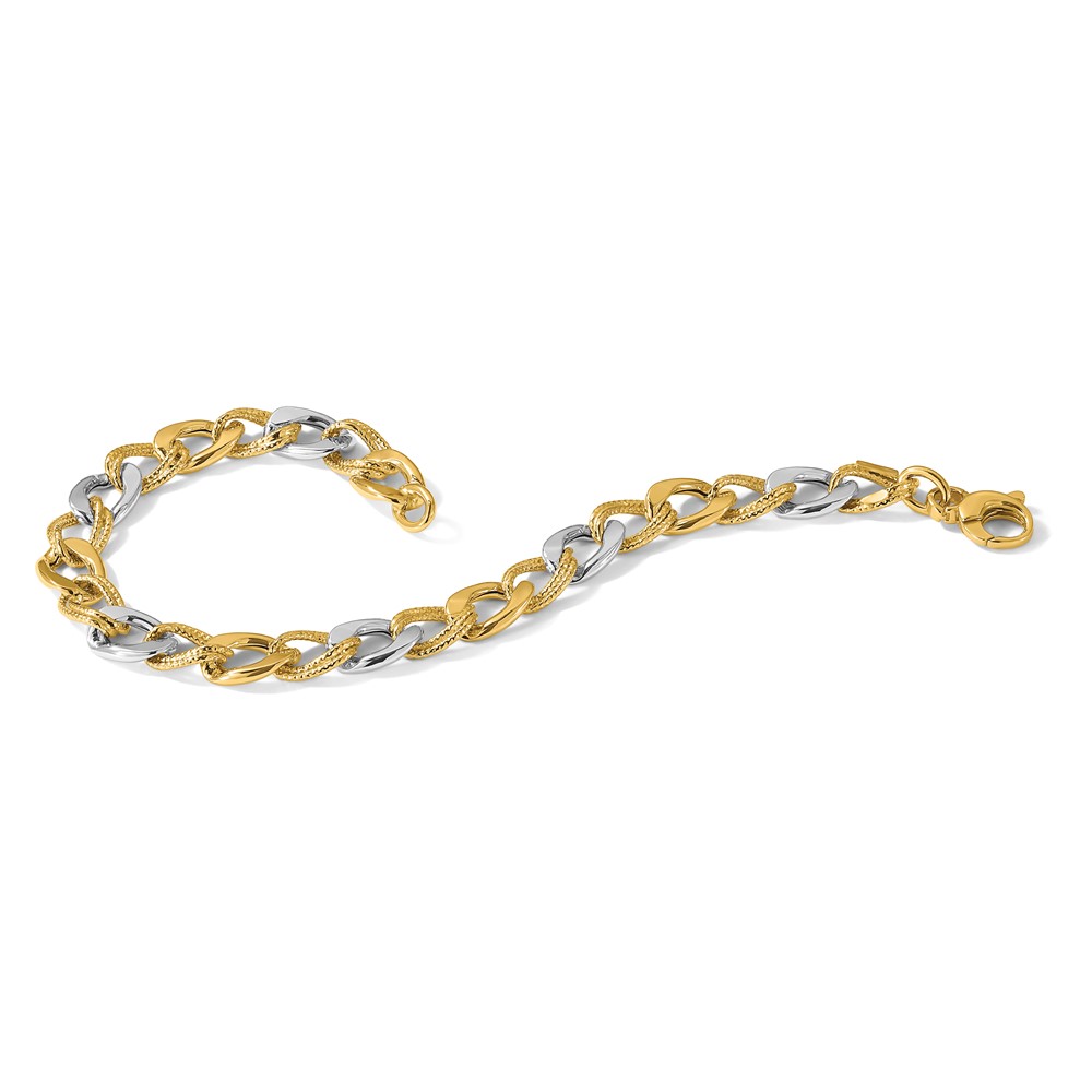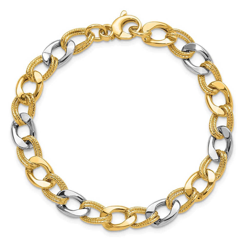 Leslie's 14K Two-tone Polished and Textured Fancy Link Bracelet