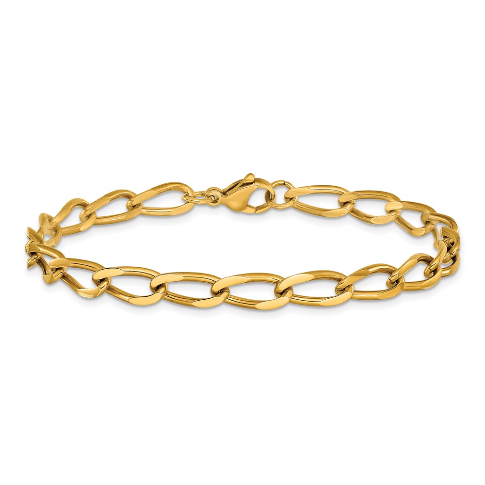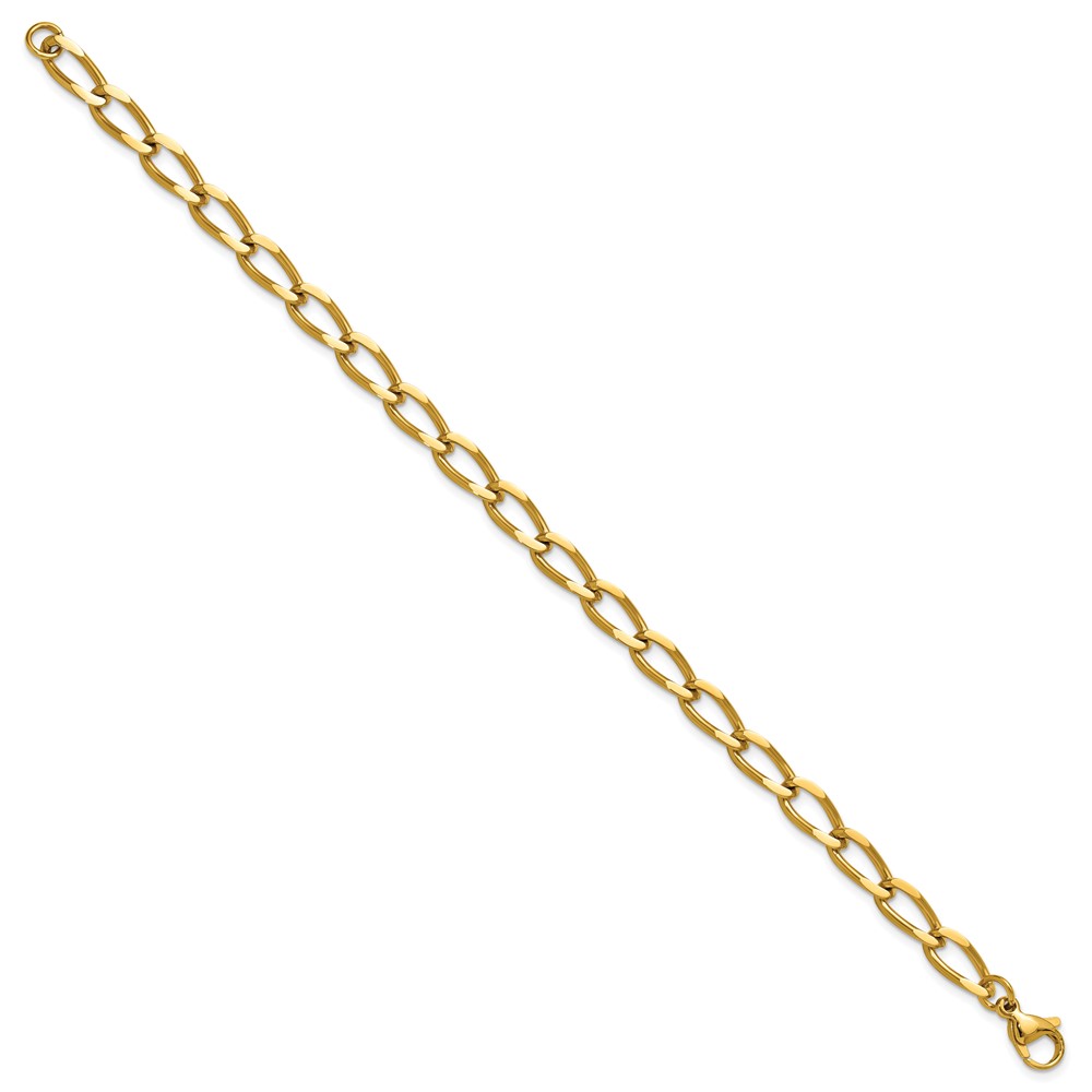 Chisel Stainless Steel Polished Yellow IP-plated 8 inch Elongated Curb Link Bracelet