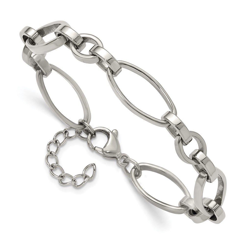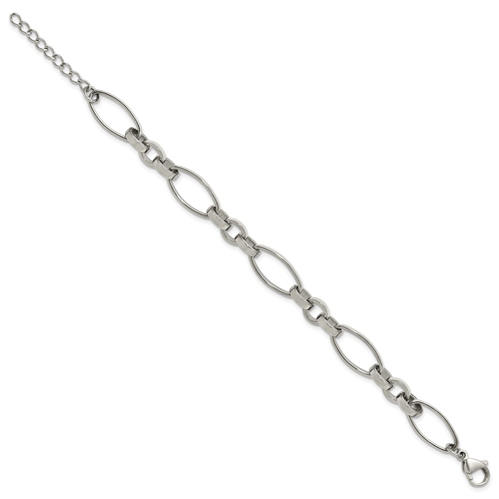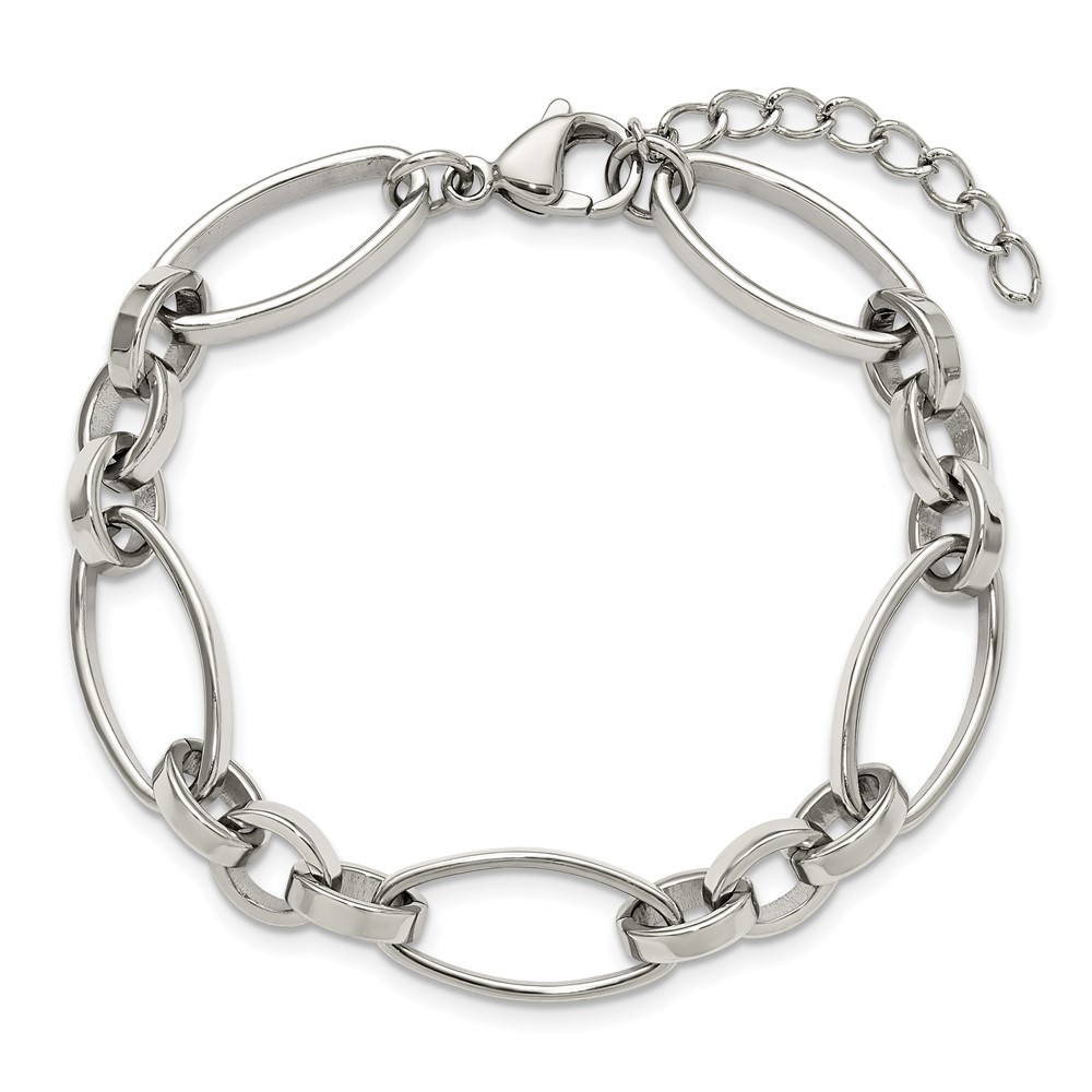 Chisel Stainless Steel Polished Open Link 6.75 inch Plus a 1.25 inch Extension Bracelet