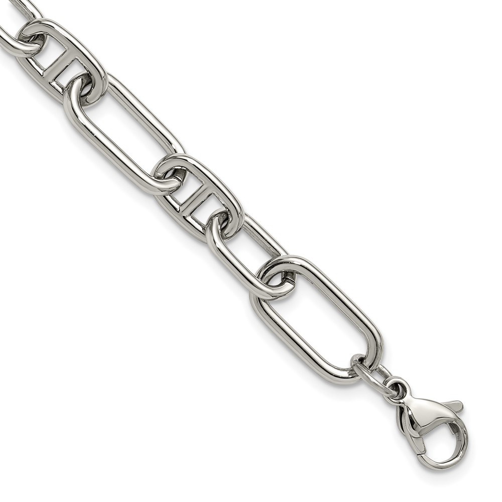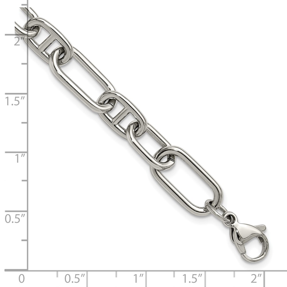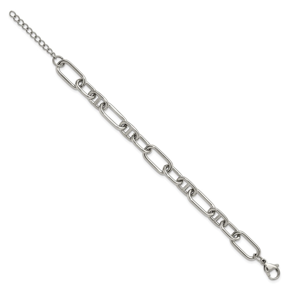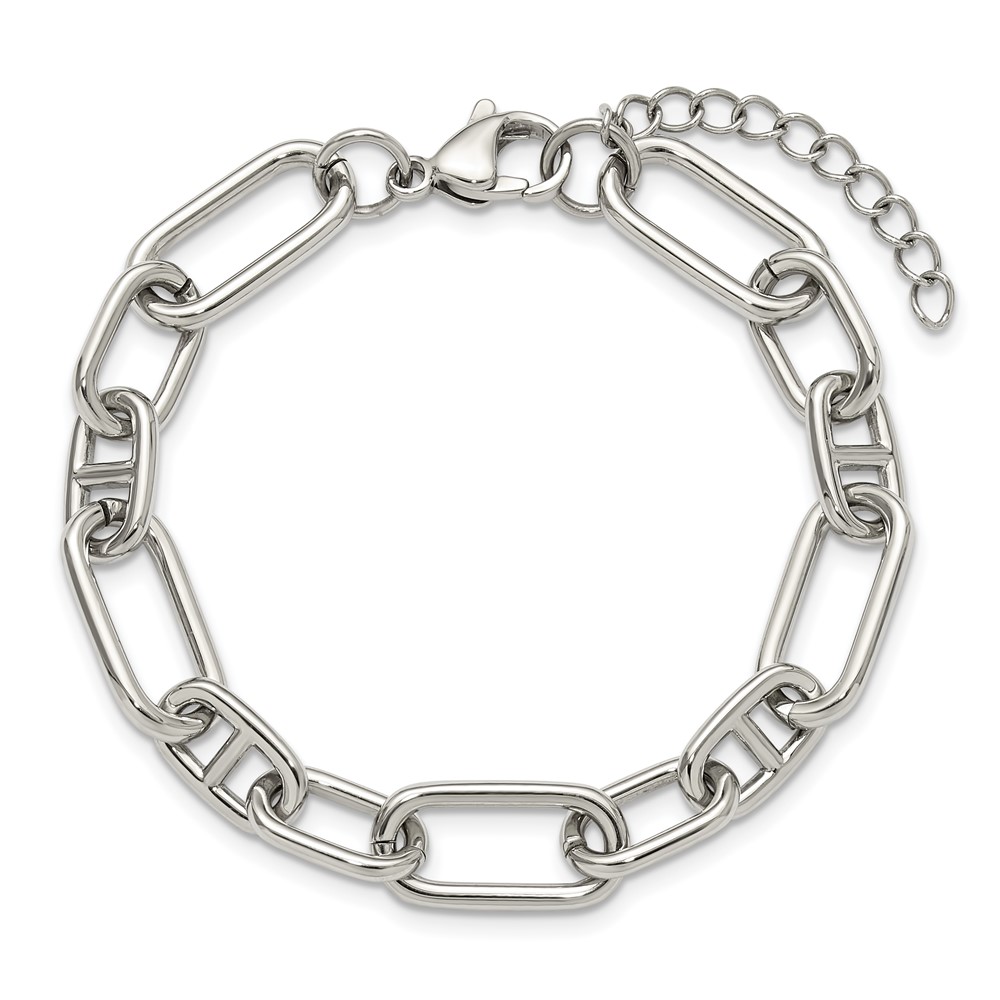 Chisel Stainless Steel Polished 9mm 6.5 inch Plus 1.25 inch 9mm Open Link Bracelet