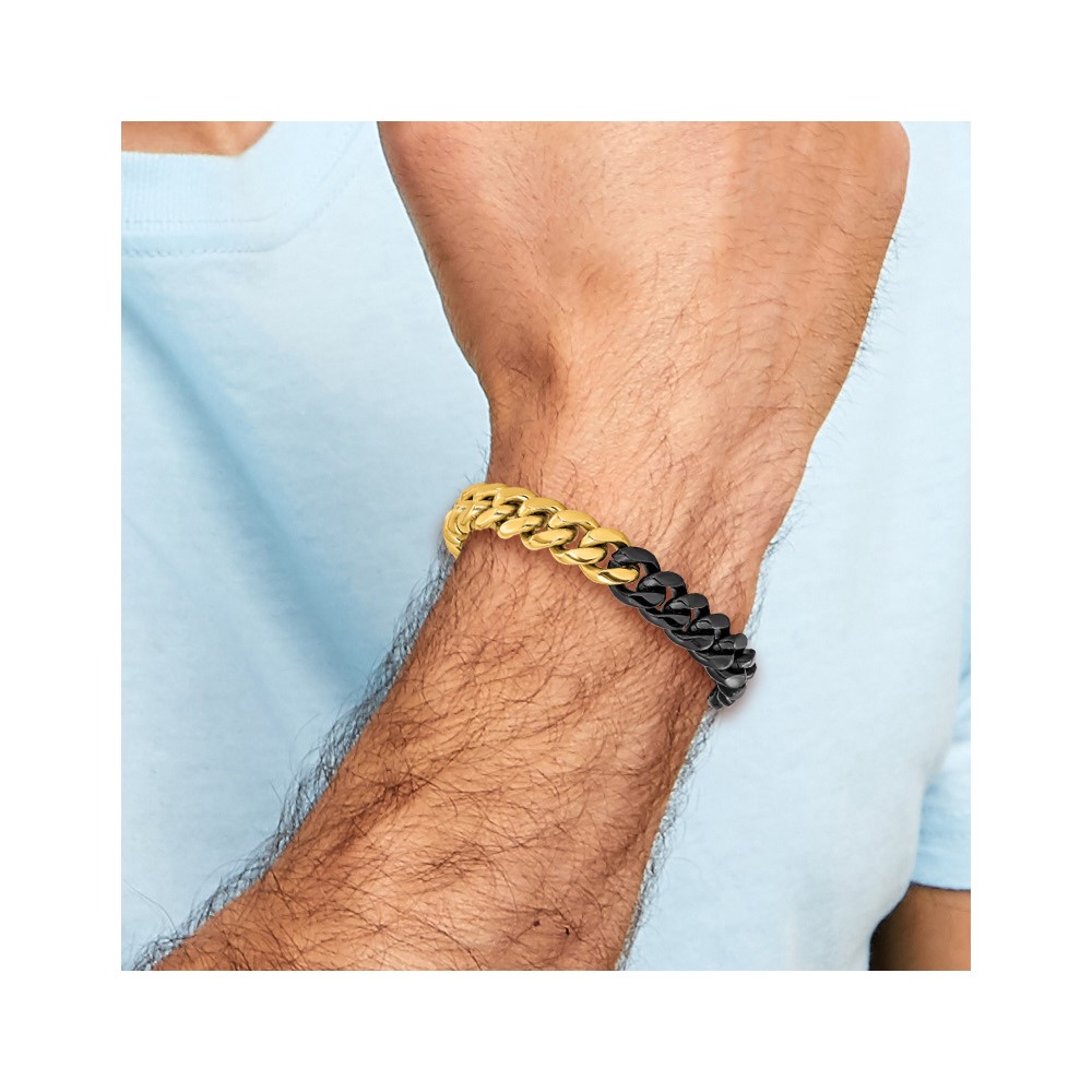 Chisel Stainless Steel Polished Black and Yellow IP-plated 12mm 8.25 inch Curb Link Bracelet