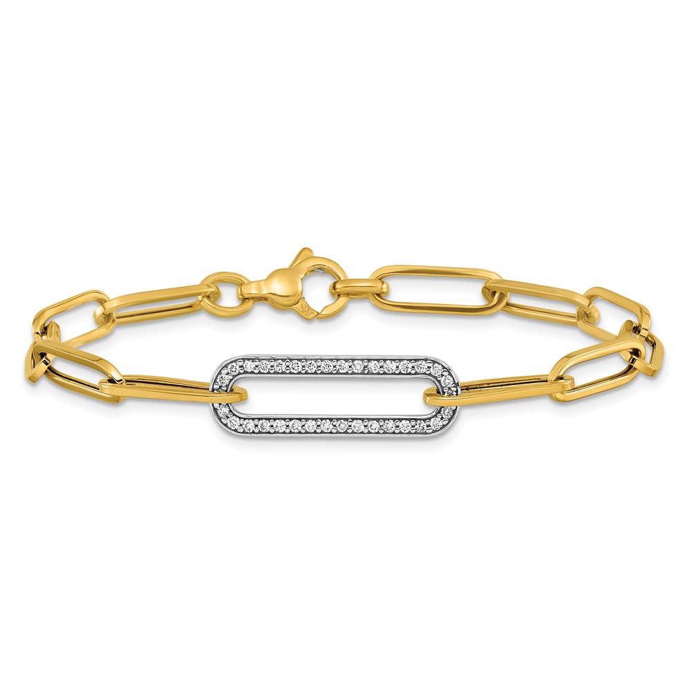 Herco 18K Two-tone Polished Diamond Paper Clip Link 7.5 inch Bracelet