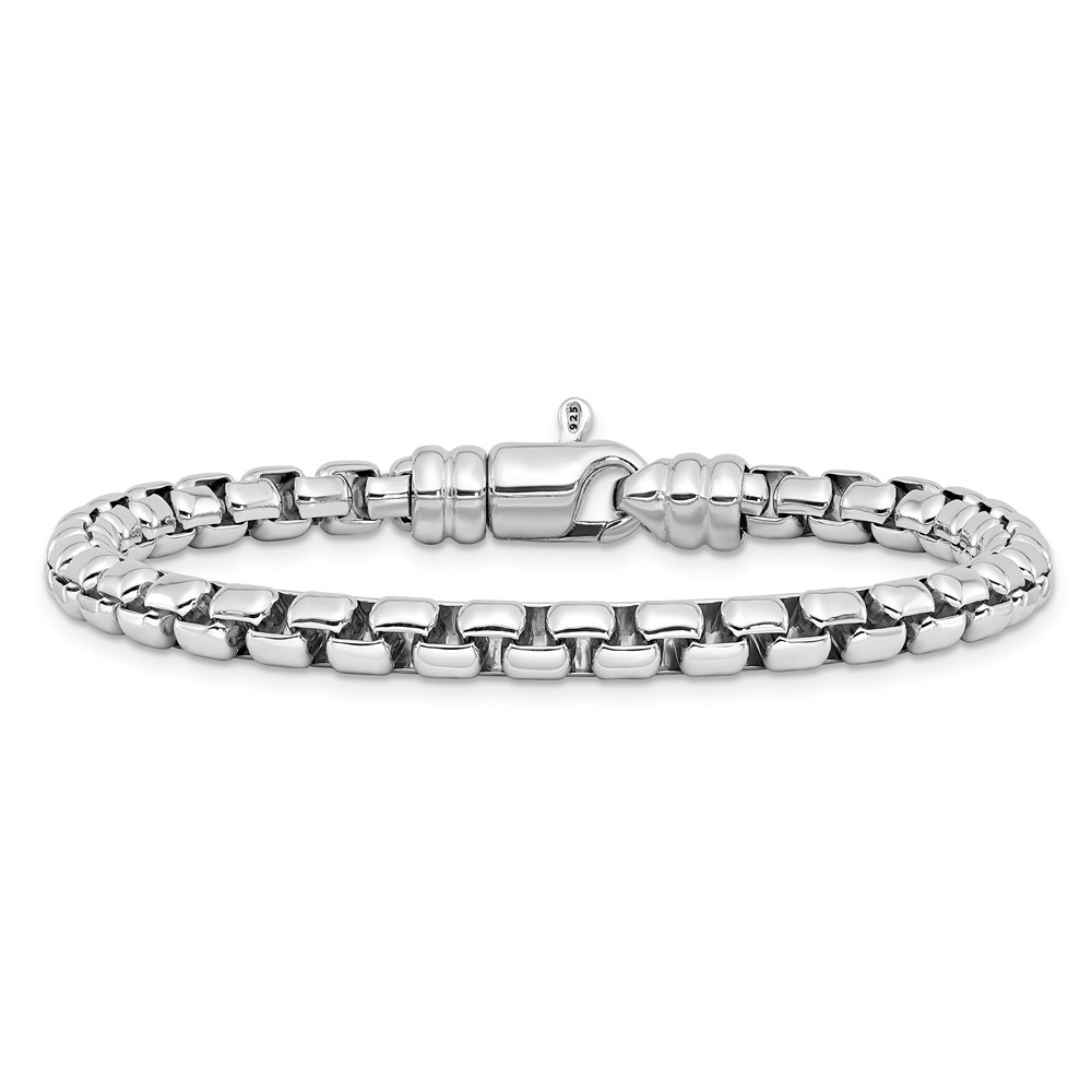 Sterling Silver Rhodium-plated 5.4mm 7.5in Venetian Box Chain Bracelet