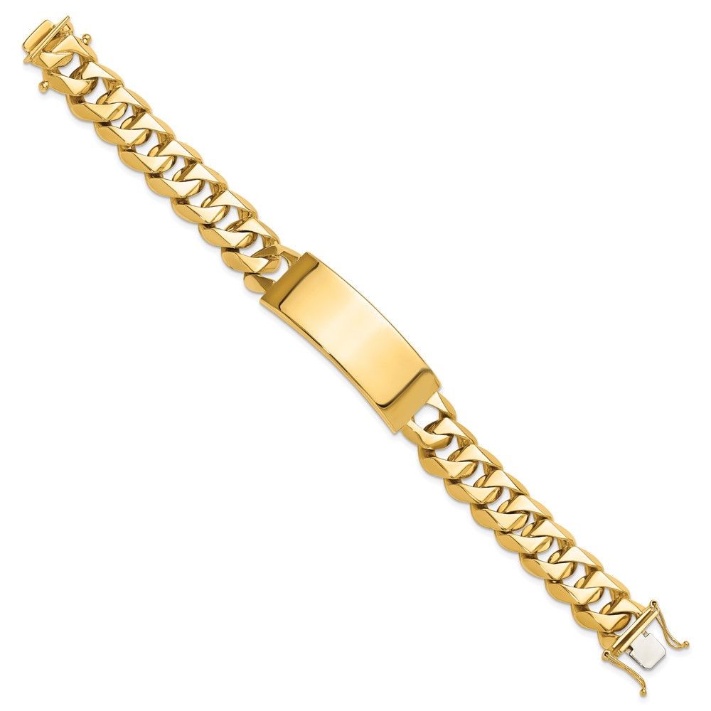 14k Hand-polished Solid Chain/Solid Plate Heavy Curb Link 48x18mm Plate 8.5 inch ID Bracelet