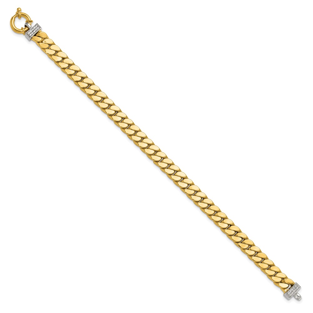 Leslie's 14K Two-tone CZ Polished Fancy Curb Bracelet