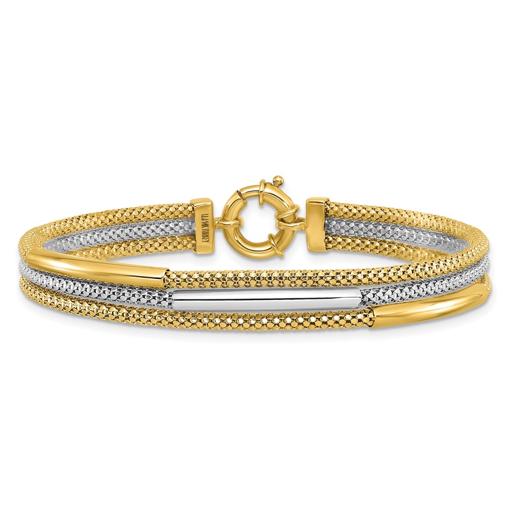 Leslie's 14K w/Rhodium Polished Bars Mesh Multi-strand Bracelet