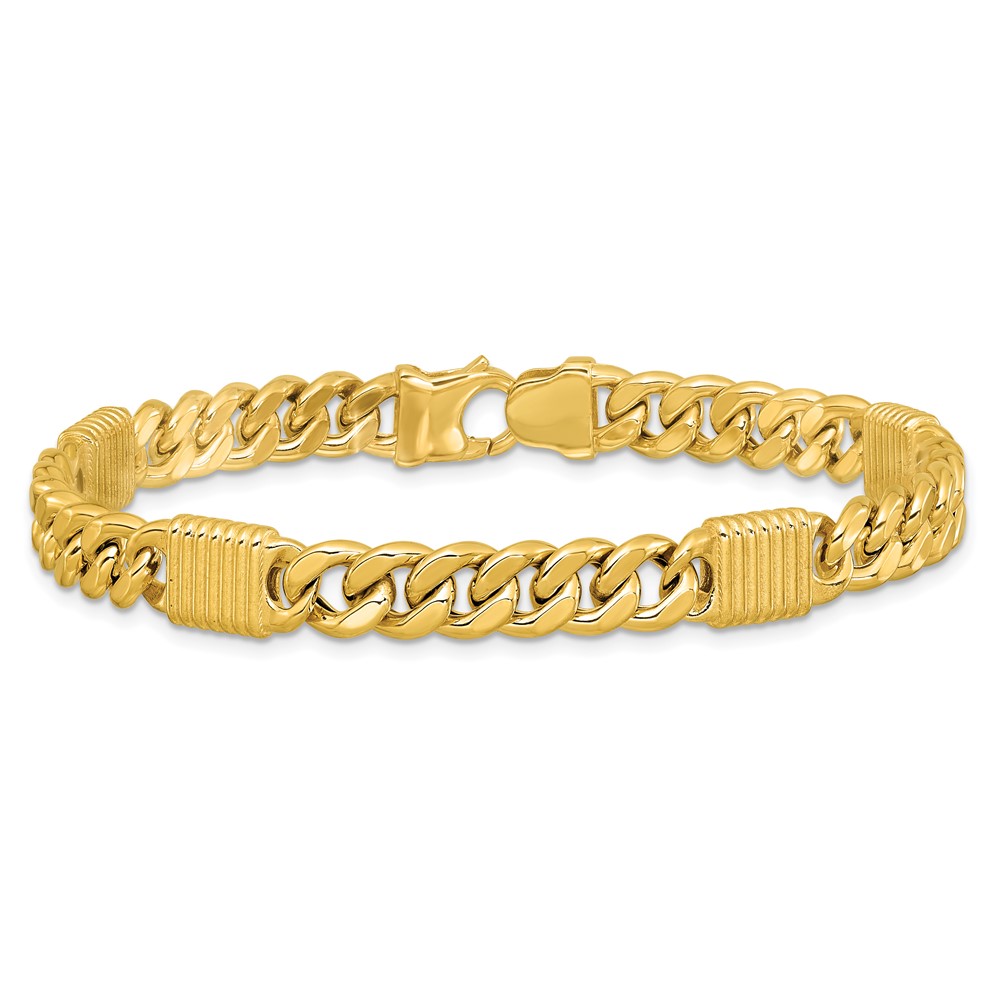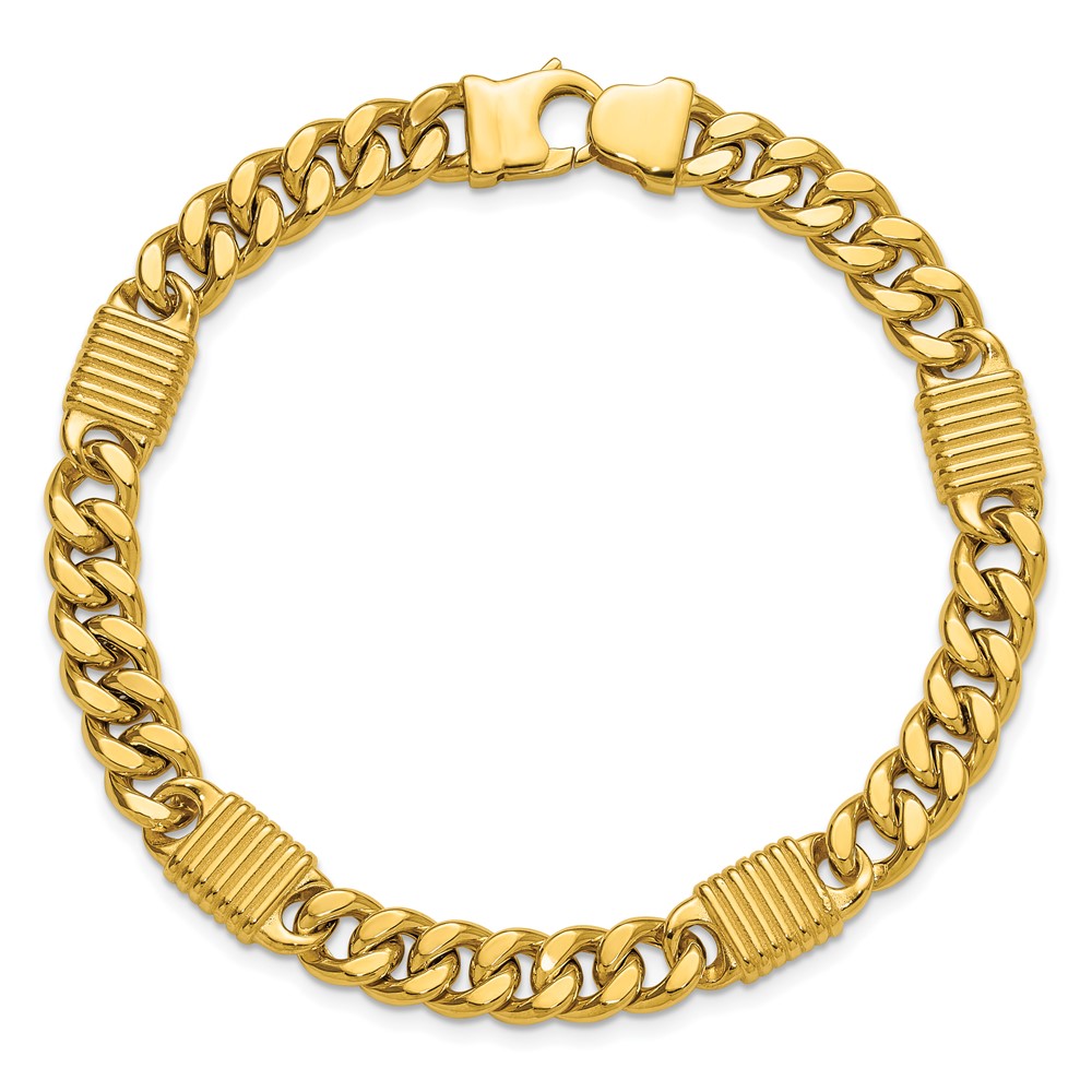 Leslie's 14K Polished/Grooved Fancy Curb Link Station Men's Bracelet
