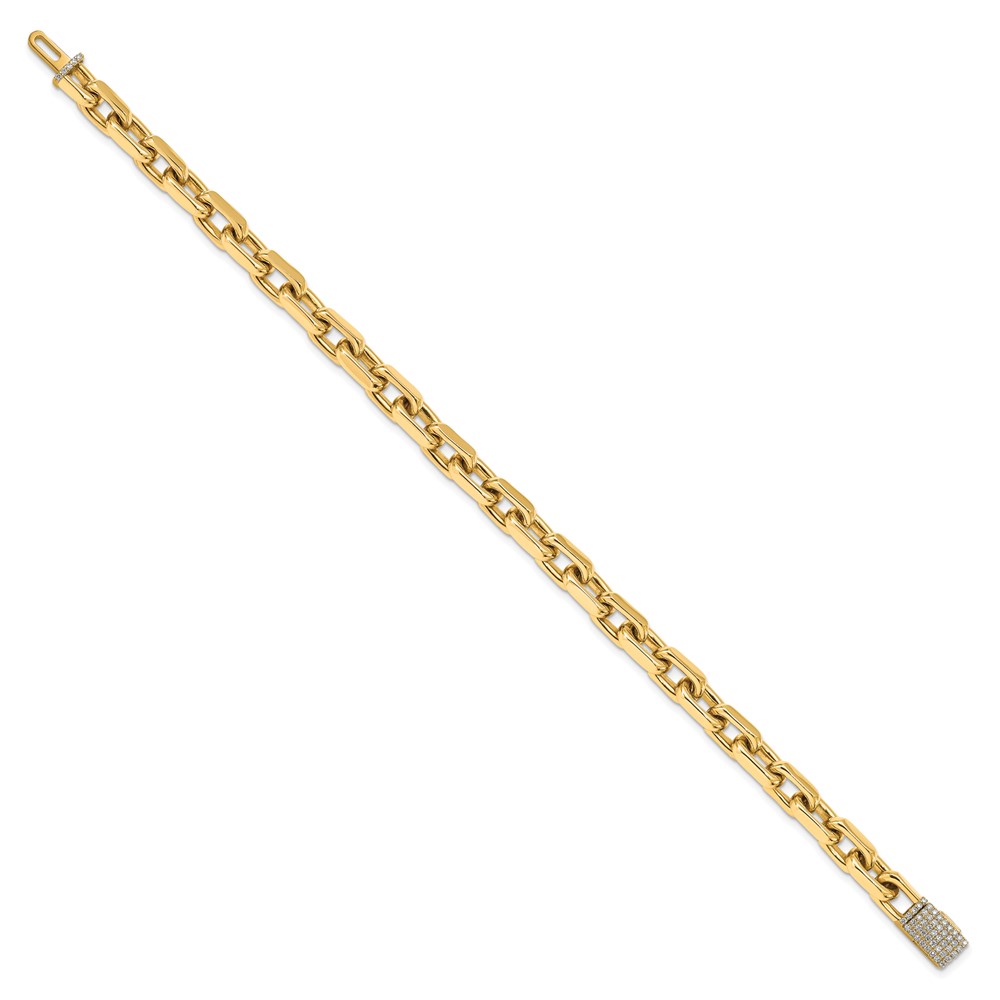 14k Hand-polished 7mm Fancy Cable Link 1.8 carat Diamond Clasp 8.5 inch Bracelet