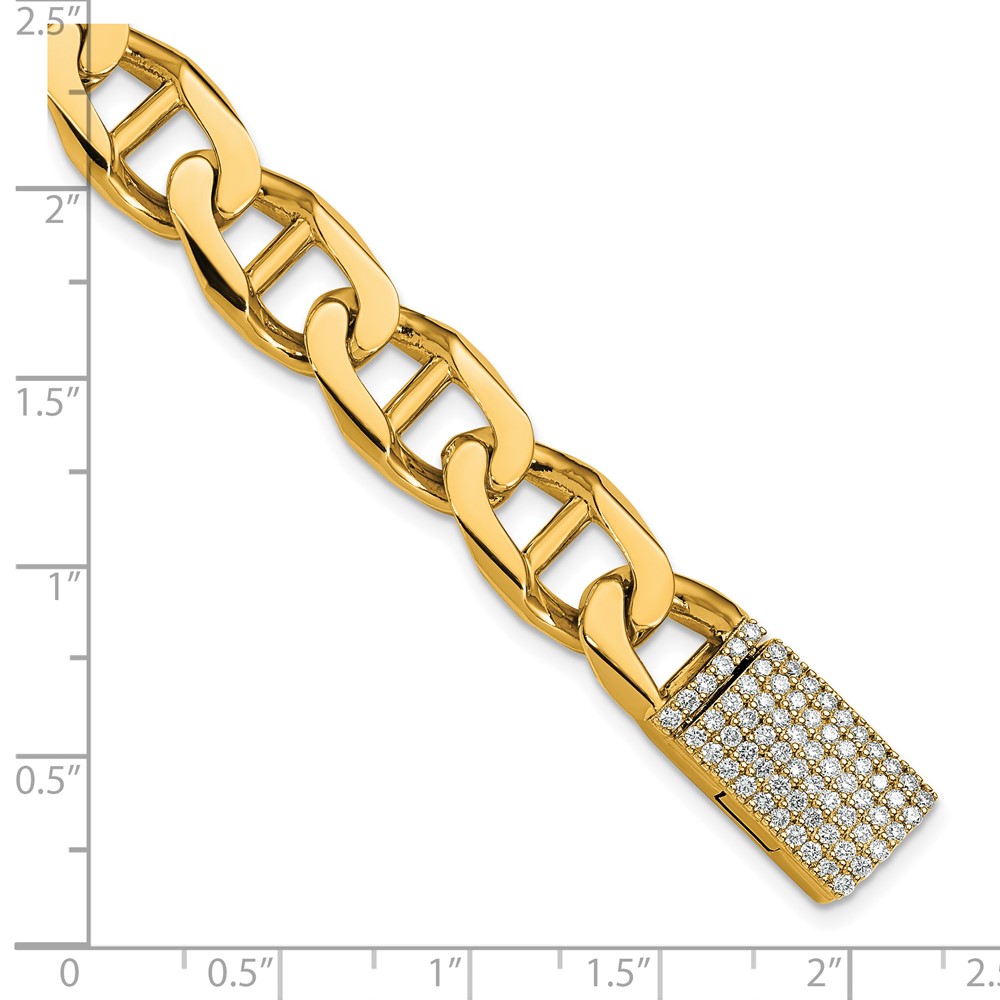 14k Hand-polished 10.3mm Anchor Link 1.5 carat Diamond Clasp 9 inch Bracelet