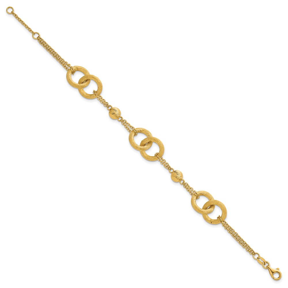 14k Polished And Brushed Double Loop and Chain 6.75 inch Bracelet with 0.75 inch Extender