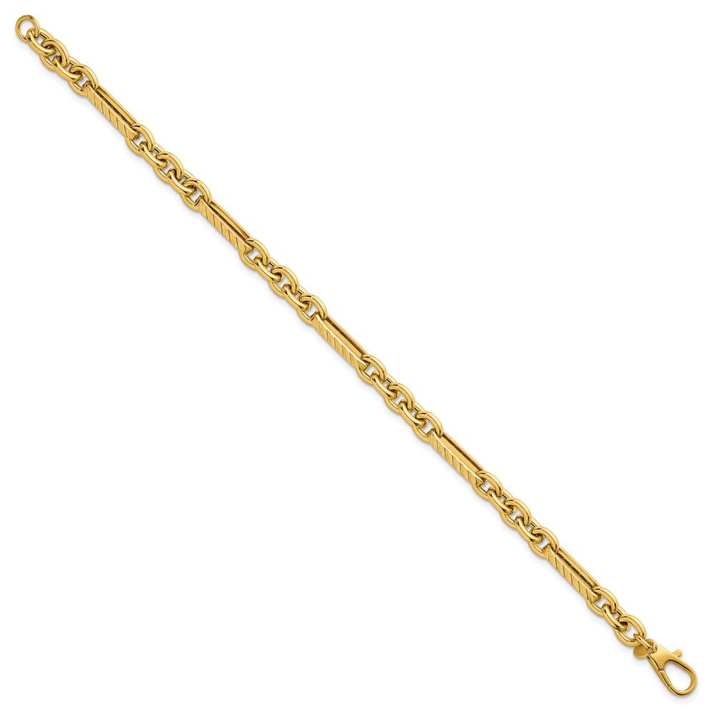 14k Polished and Textured 4.9mm Oval and Round Link 7.5 inch Bracelet