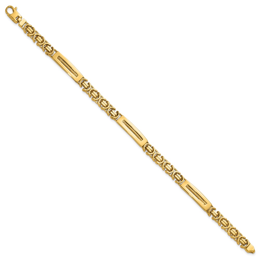 14k Polished 6.1mm Fancy Link and Textured Bars 8 Inch Mens Bracelet