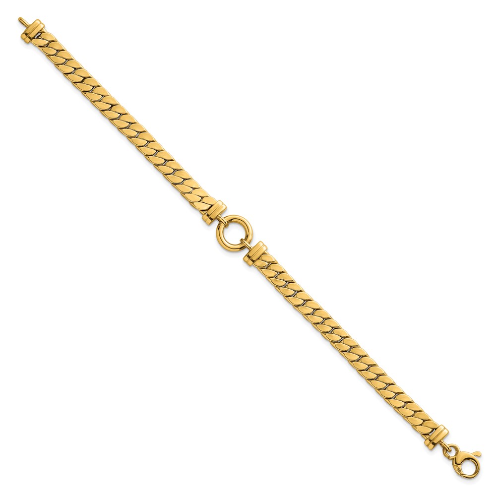 14k Polished Flat Curb Link with Center Circle Element 7.5 inch Bracelet