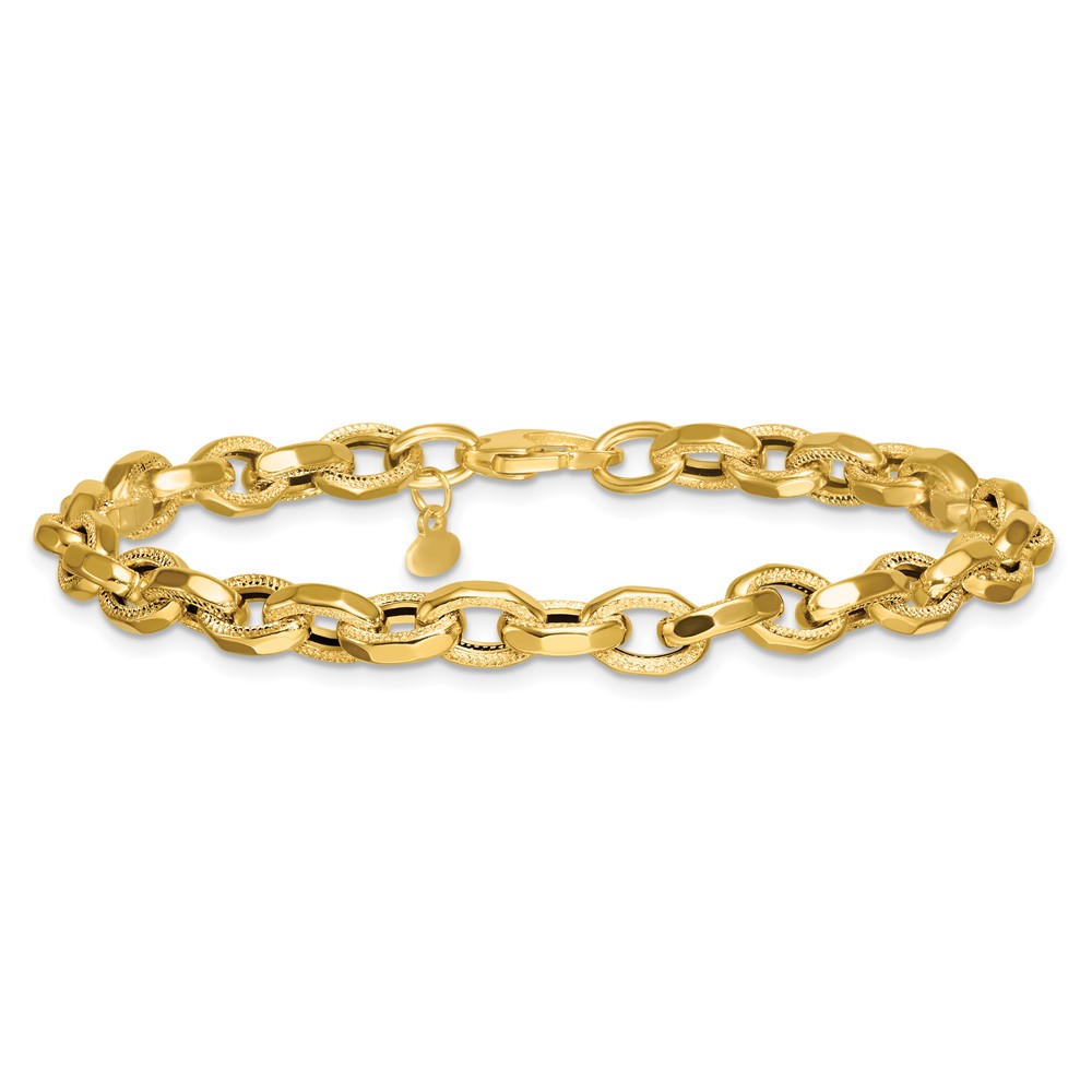 14k Polished Fancy Textured Oval Open Link 7.5 inch Bracelet