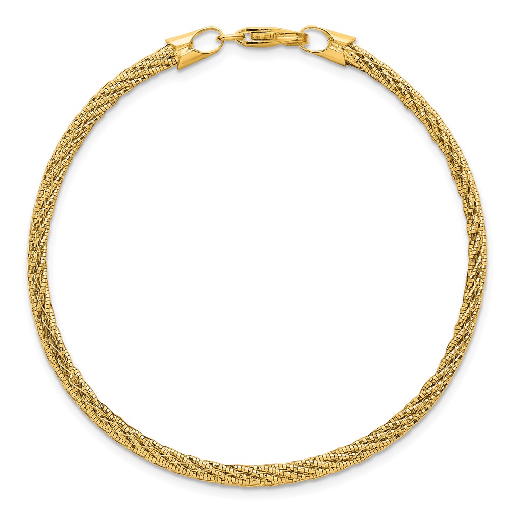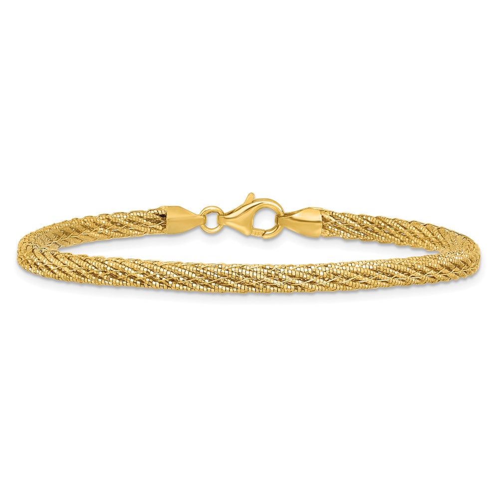 14k Polished and Diamond-cut Round Woven Wire 7.5 inch Bracelet