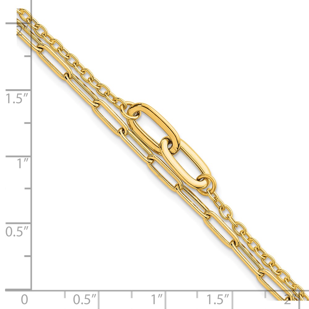 14k Polished Paperclip and Oval Cable Link Double Strand 7.5 inch Bracelet