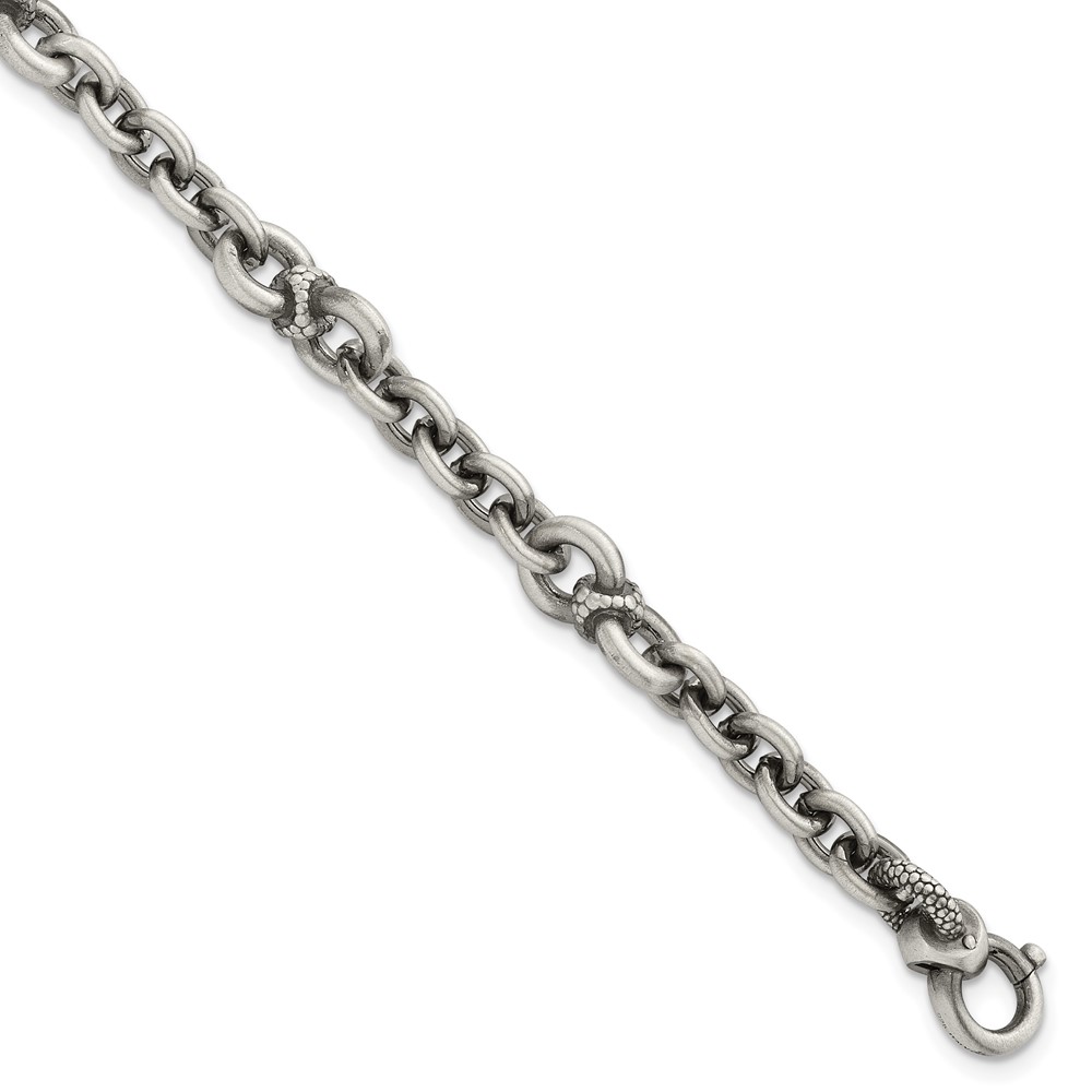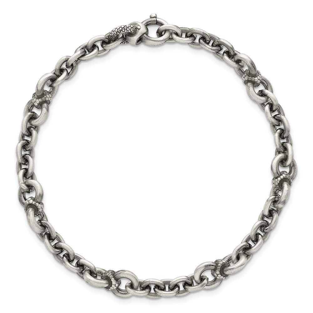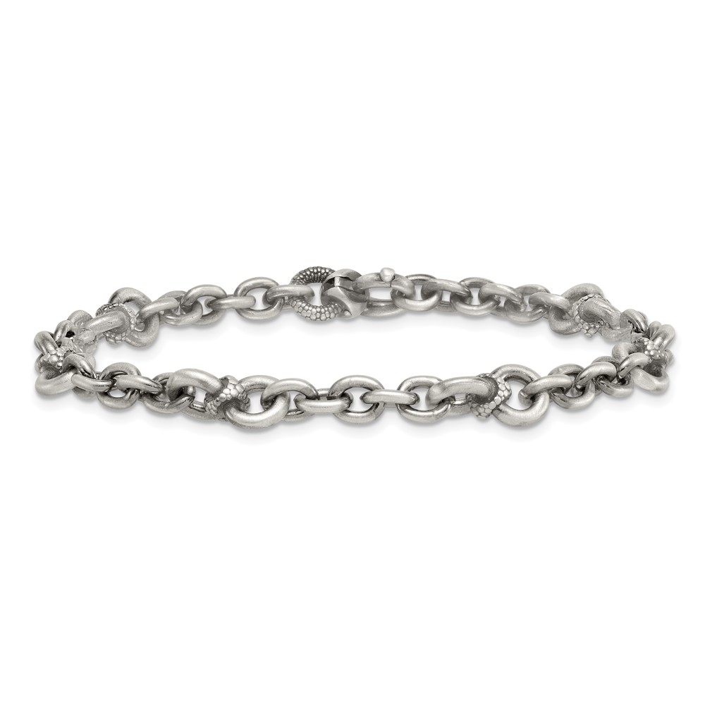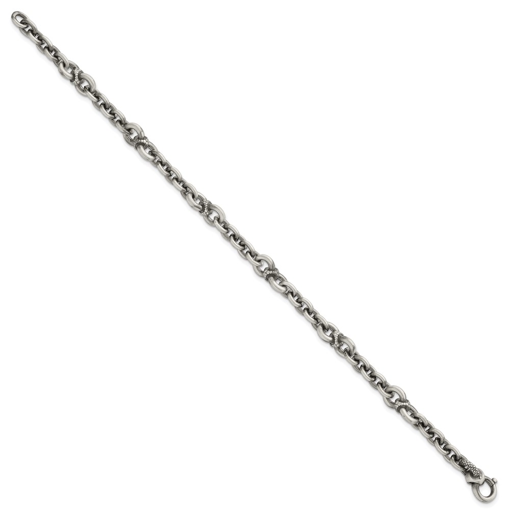 Sterling Silver Black Ruthenium-plated Brushed and Textured Fancy Cable Link Mens 8.5 inch Bracelet