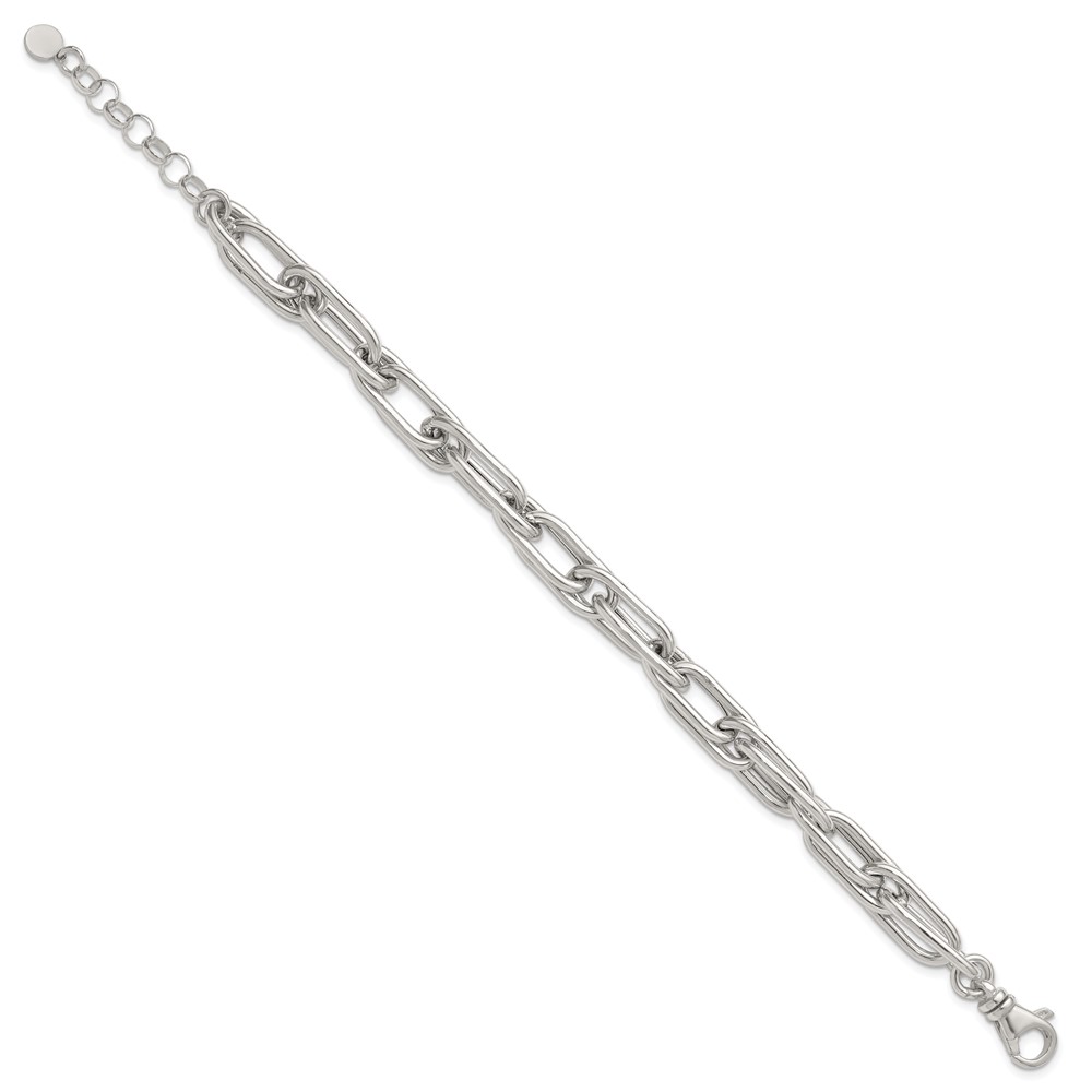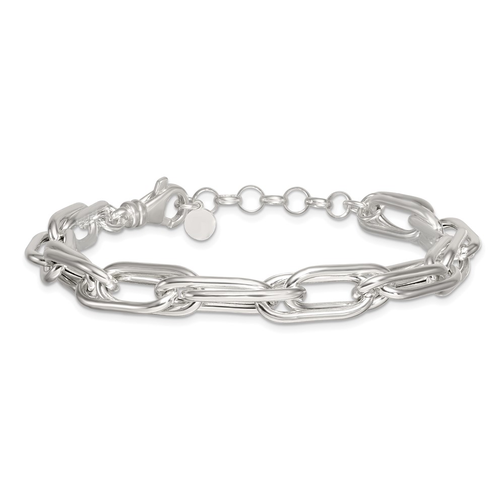 Sterling Silver Polished Oval Double Link 7.5 inch with 1 inch Extender Bracelet