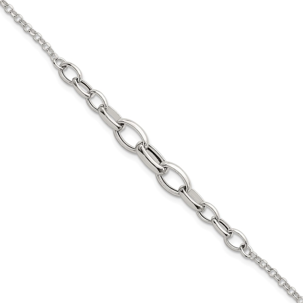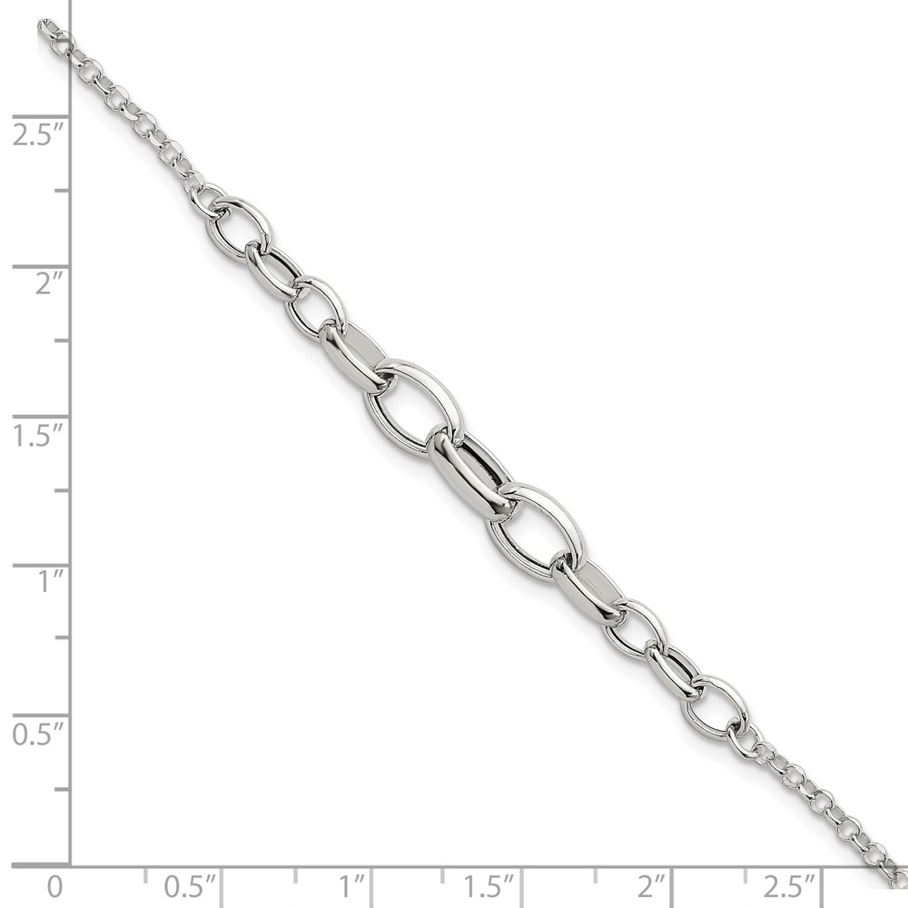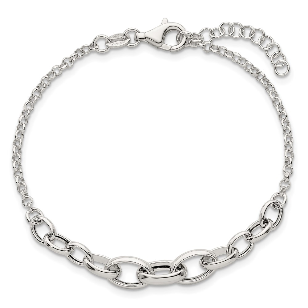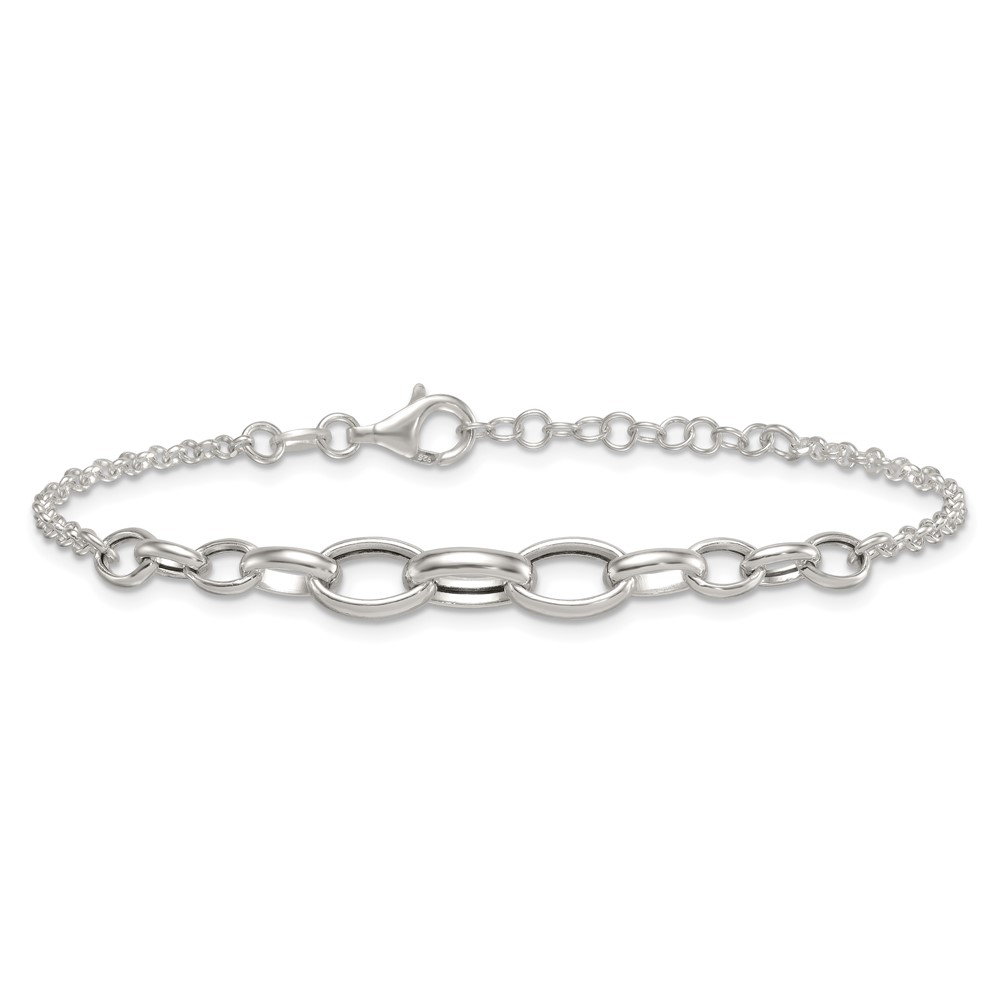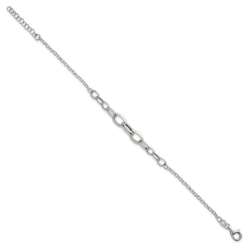 Sterling Silver Polished Fancy Graduated Cable Link 7 Inch with 1 Inch Extension Bracelet