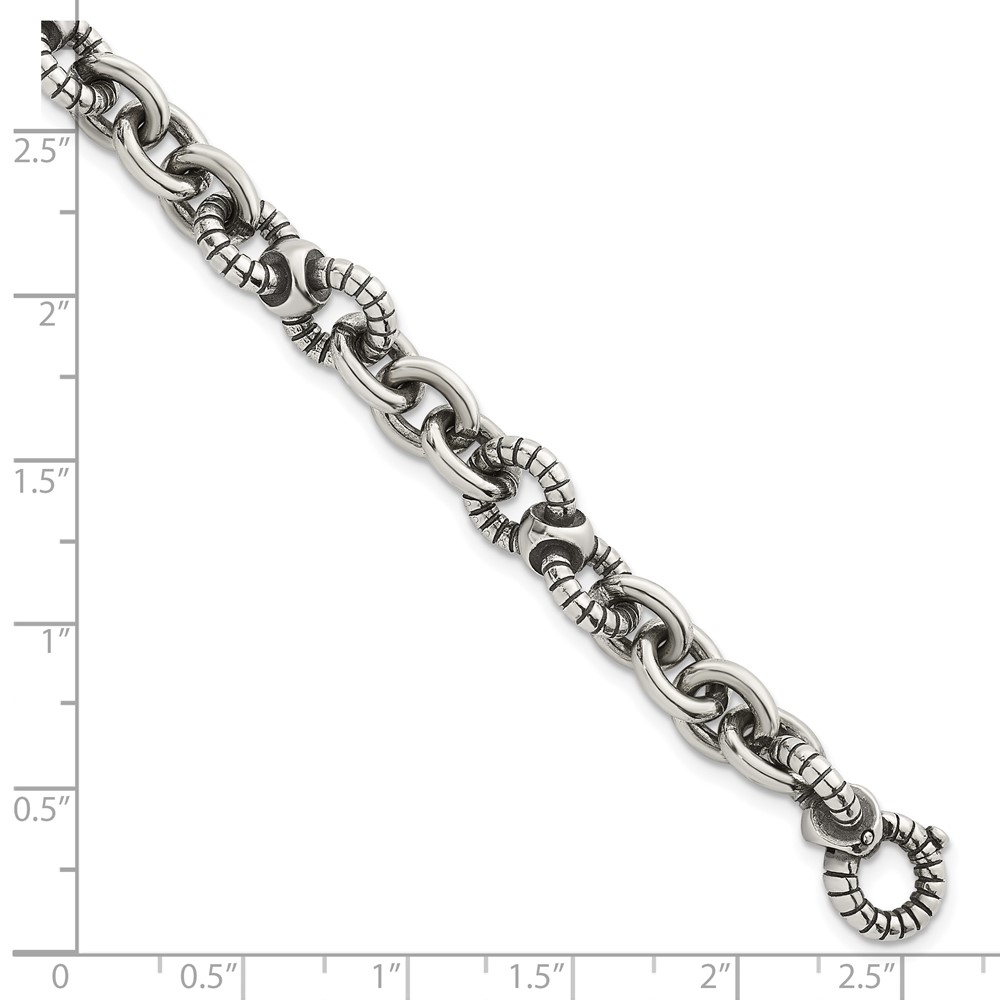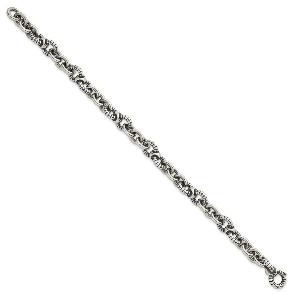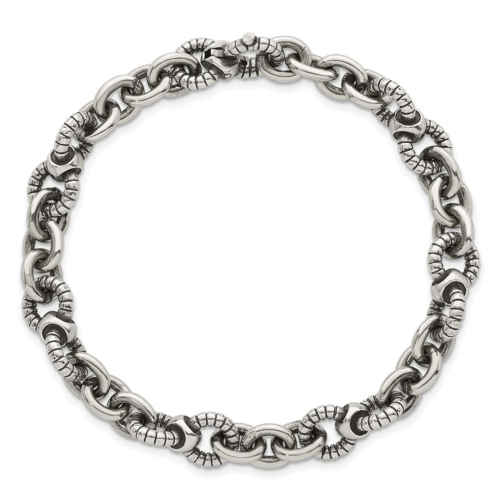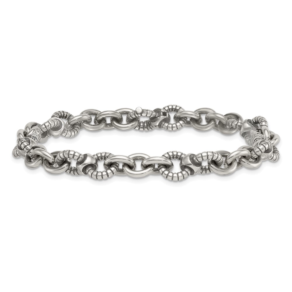 Sterling Silver Oxidized Polished and Textured Round Fancy Cable Link Mens 8.25 inch Bracelet