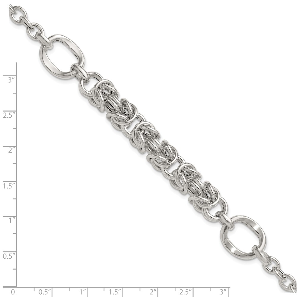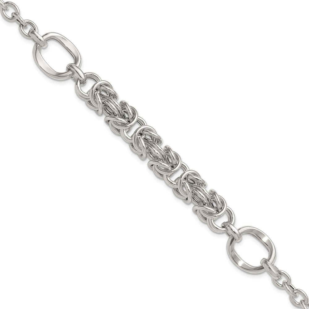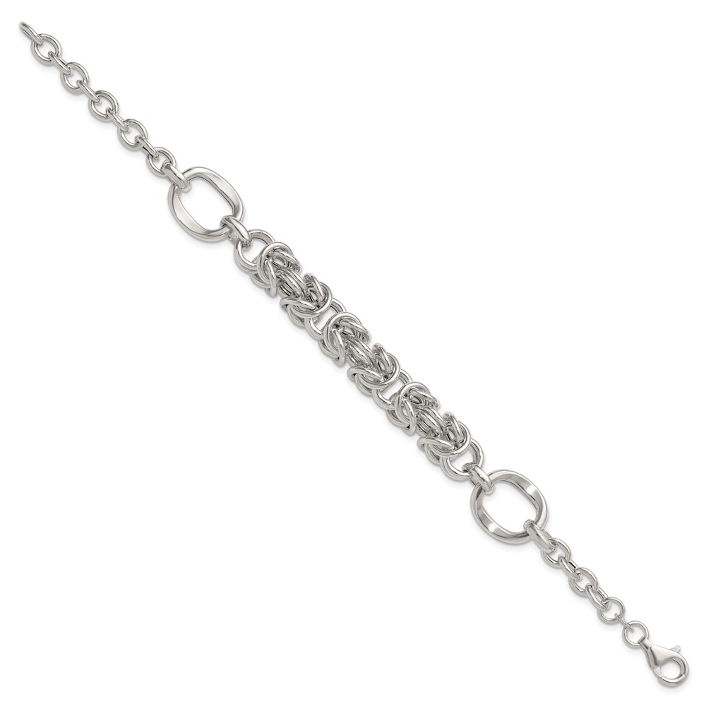 Sterling Silver Polished Fancy Byzantine Center 7.75 inch Bracelet