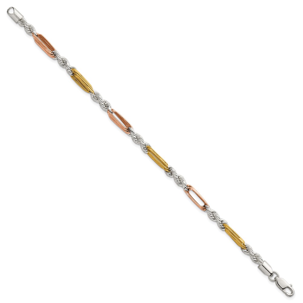 Sterling Silver Rose-tone and Gold-tone Polished 4.5mm Figaro Rope 7.5 Inch Bracelet