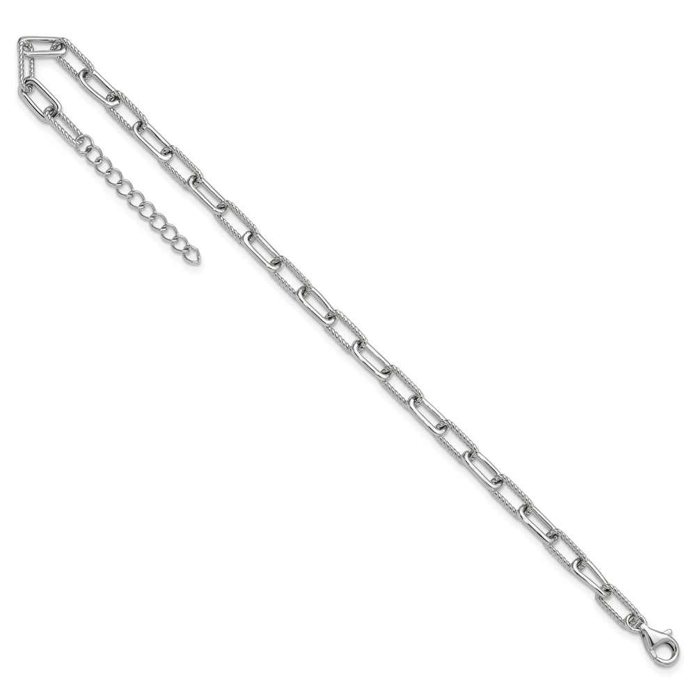 Sterling Silver Rhodium-plated Polished and Twisted Paperclip Link 7 Inch with 1 Inch Extension Bracelet