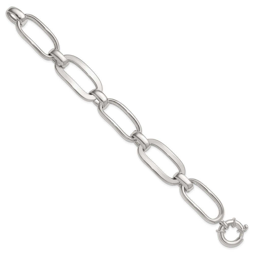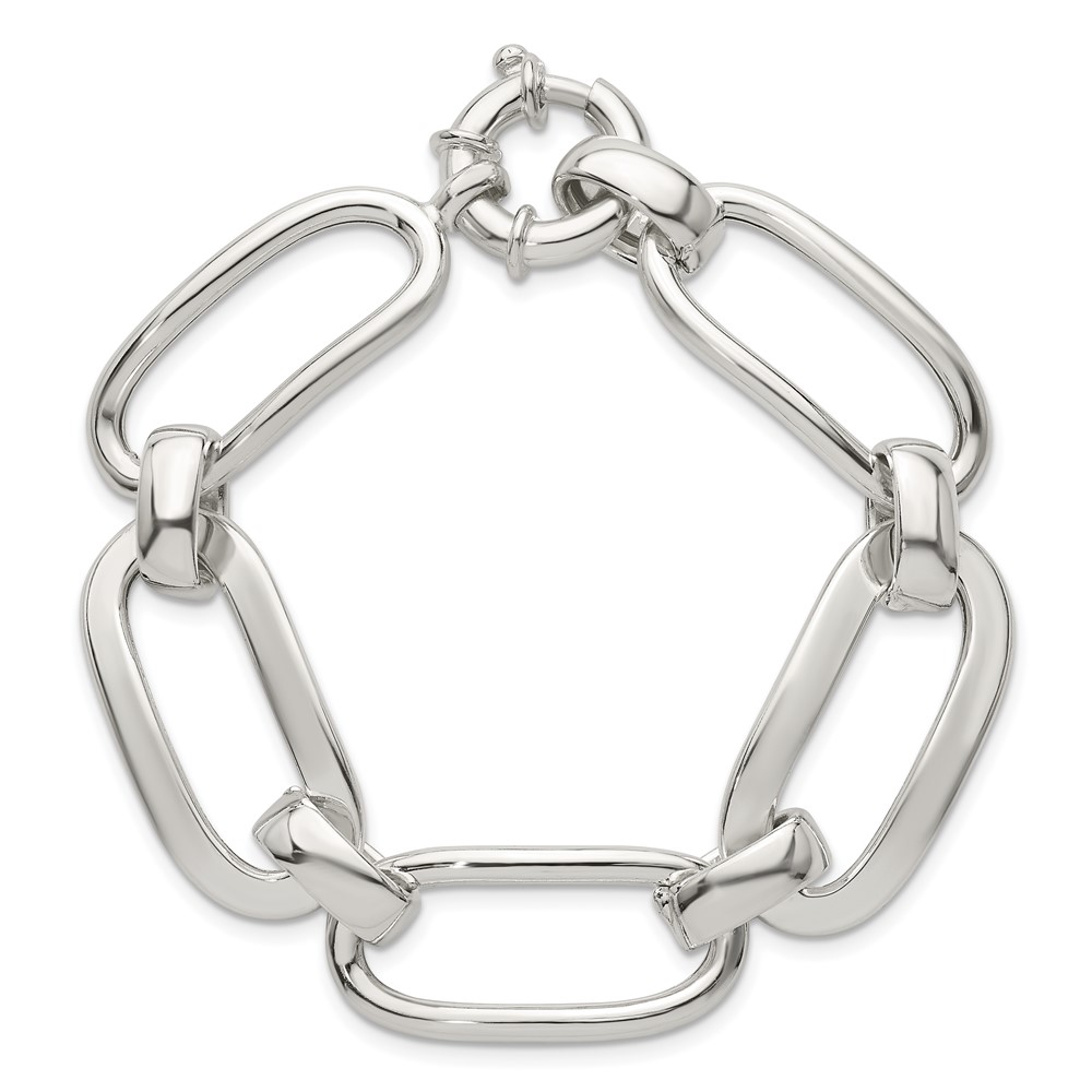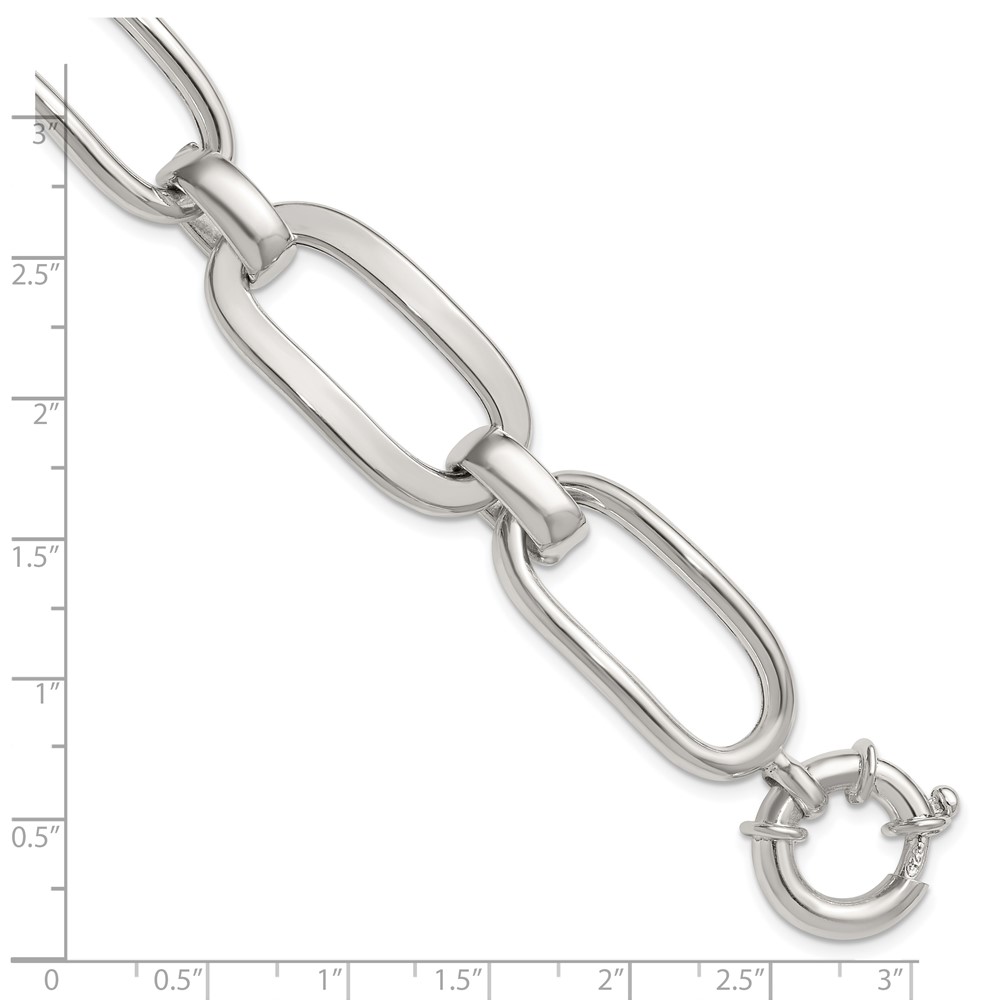 Sterling Silver Polished Long Oval and Round Link 7.5 inch Bracelet