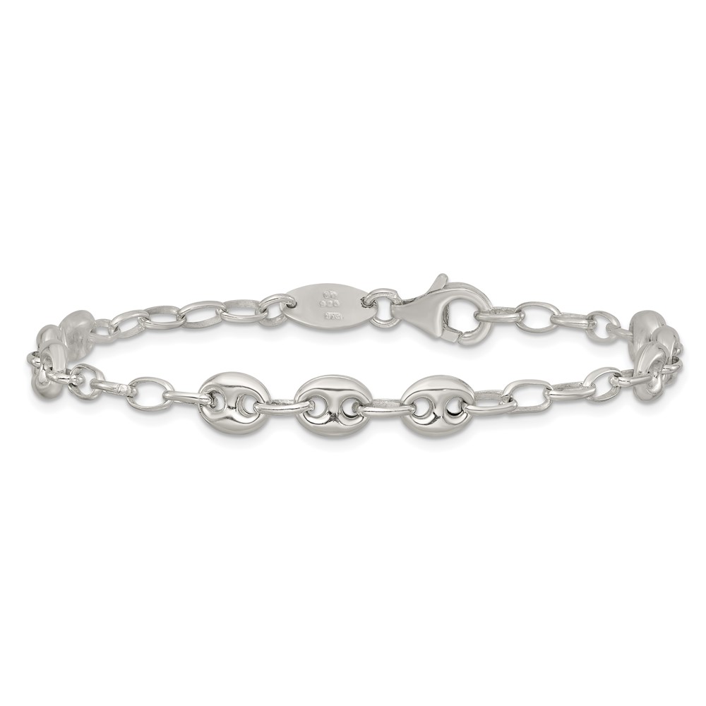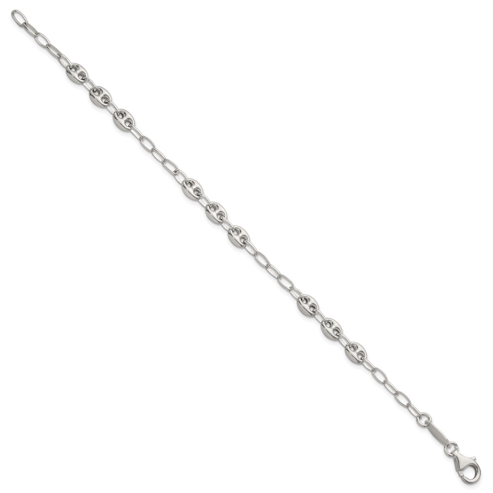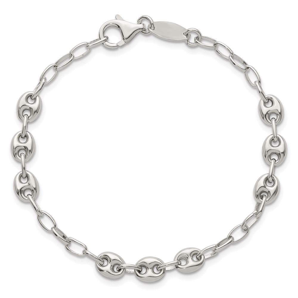 Sterling Silver Puffed Anchor/Mariner Link and Chain 8 inch Bracelet