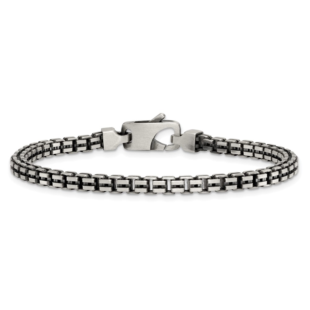Sterling Silver Antiqued Brushed Fancy Box Link Bracelet