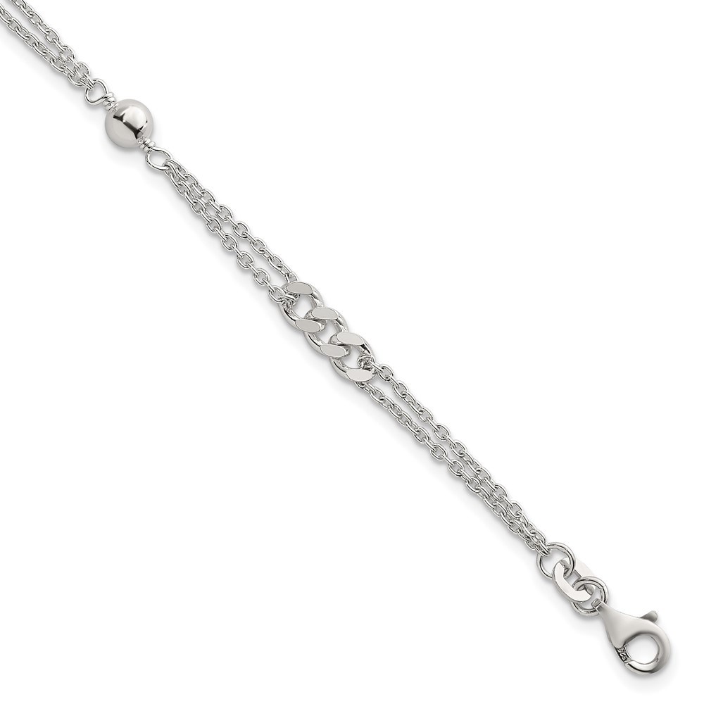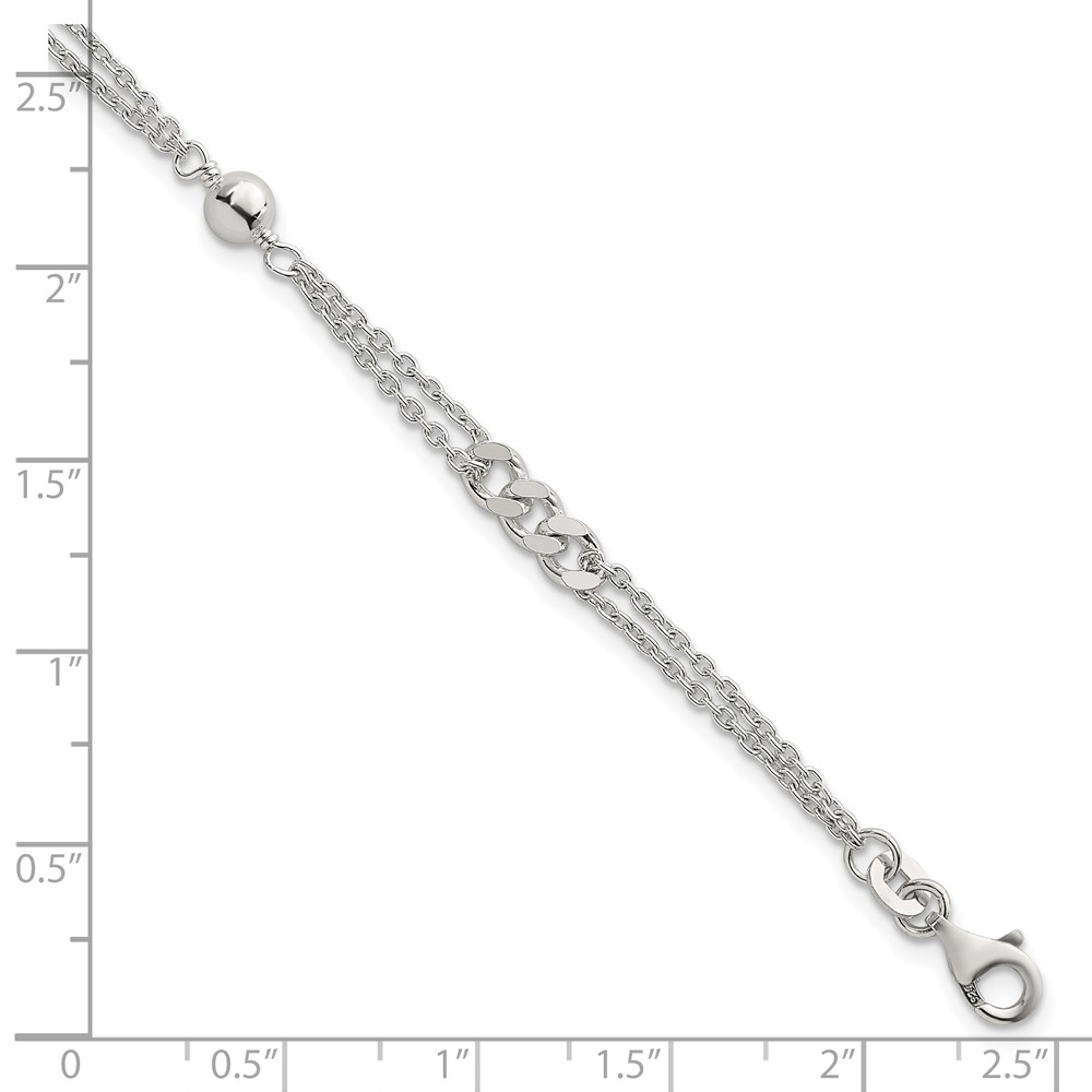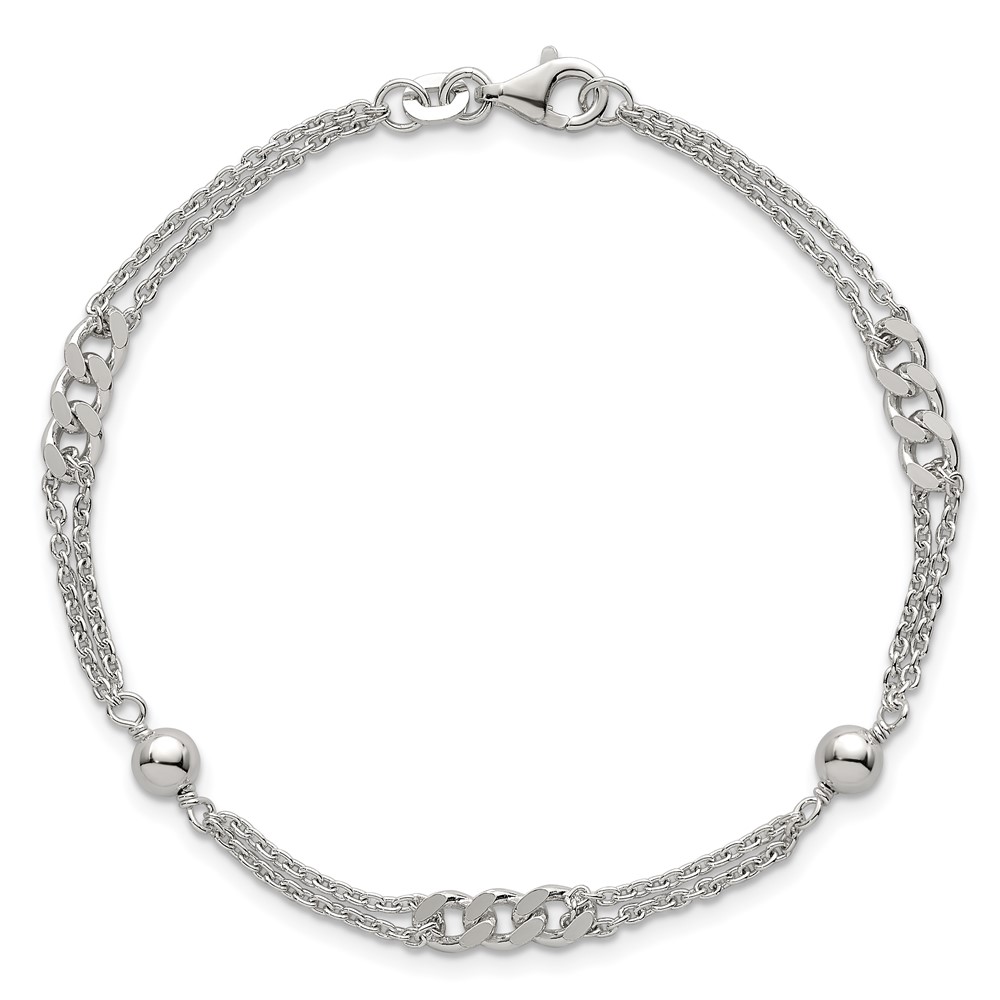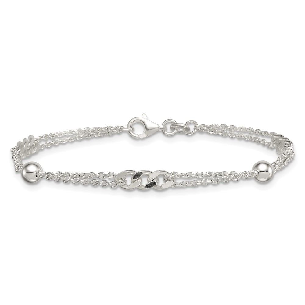 Sterling Silver Polished and Beaded Fancy Double-Strand Link 7.25 inch Bracelet