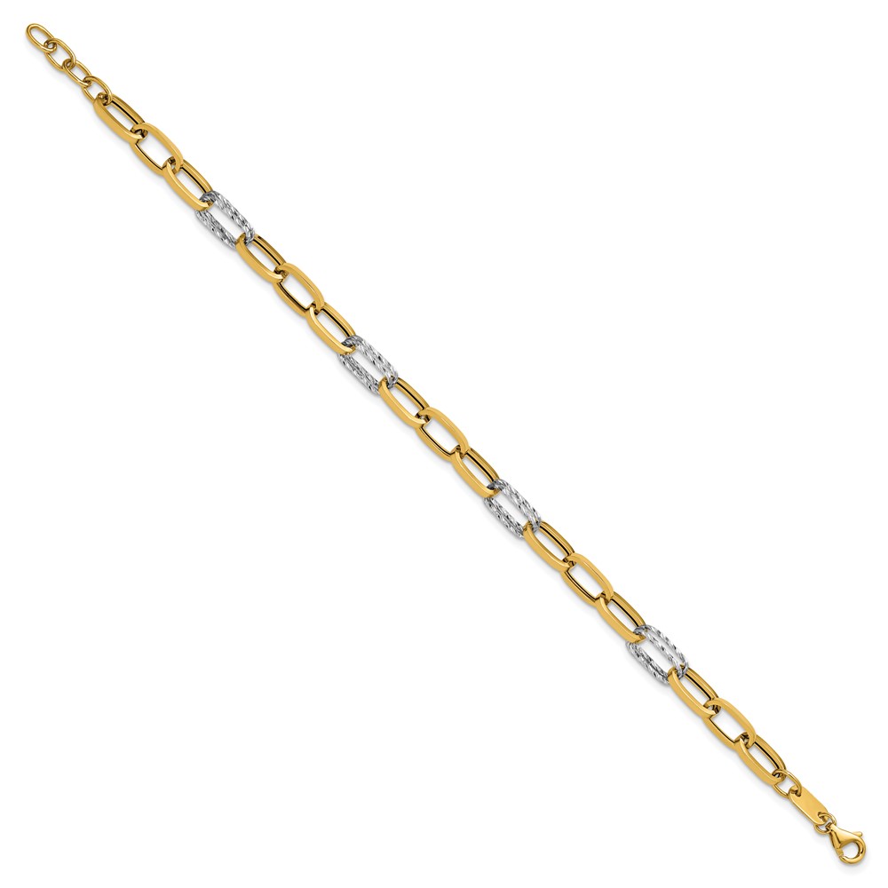 Leslie's 14K Two-tone Polished / Dia-cut Fancy Link w/.5in ext. Bracelet