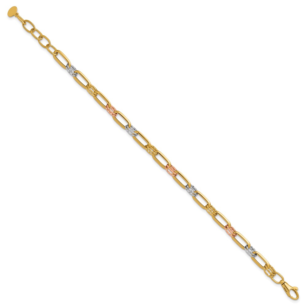 Leslie's 14K Tri-color Polished / DC Fancy Link w/1in ext. Bracelet