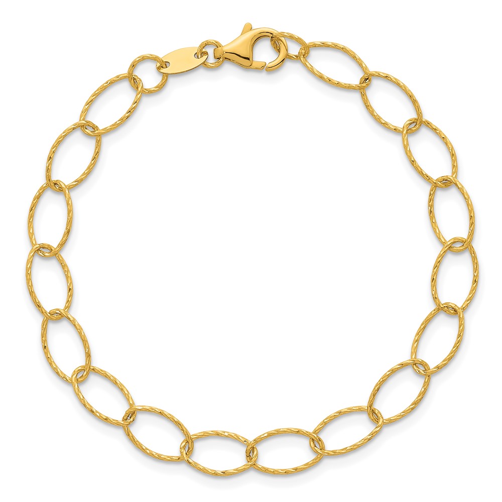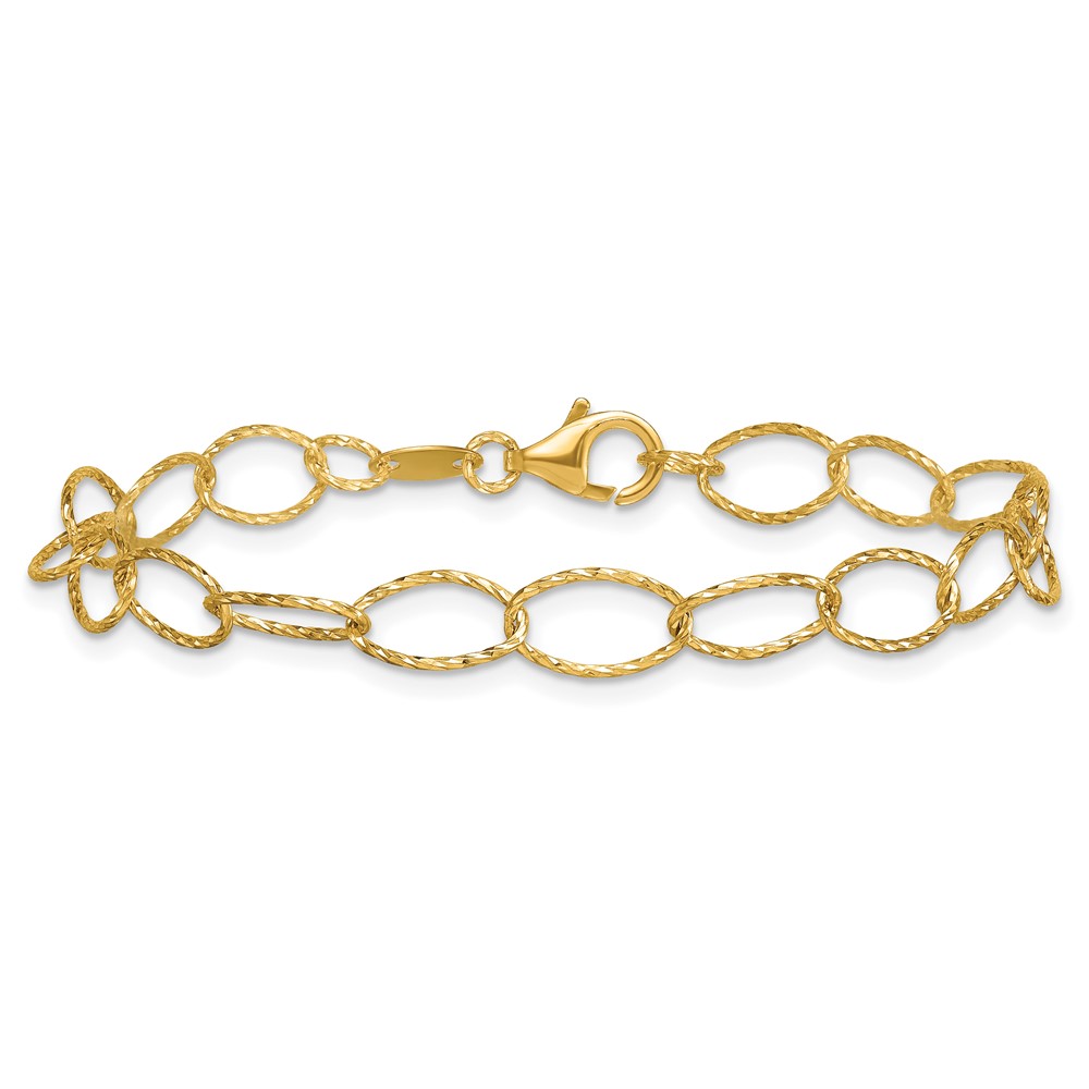 Herco 14K Polished Diamond Cut Oval Link 7.5 Inch Bracelet