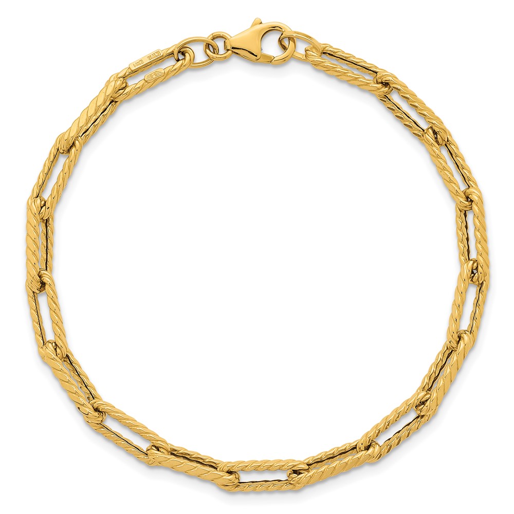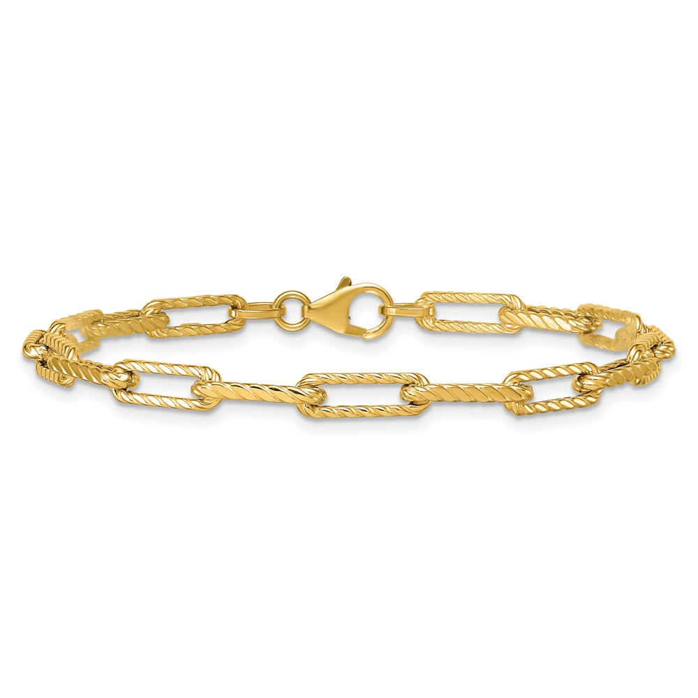 Herco 14K Polished Twist Texture Paperclip Link 7.5 Inch Chain Bracelet