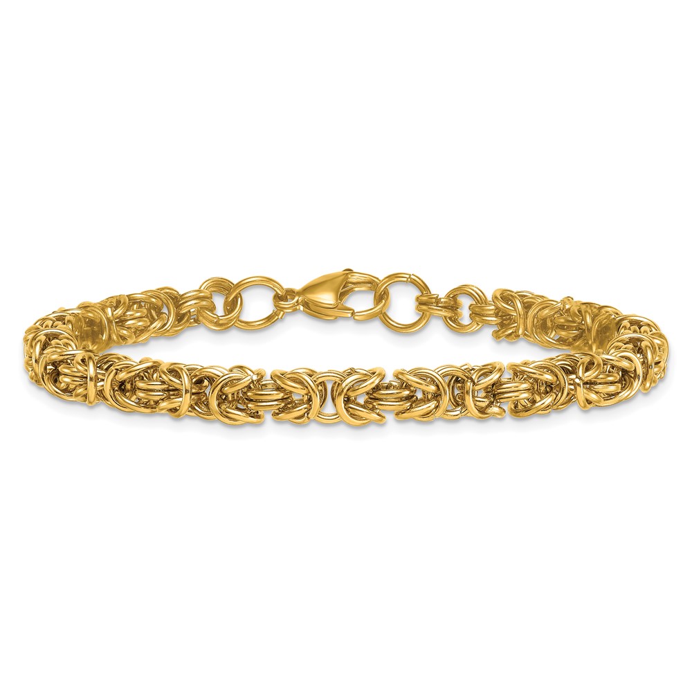 Stainless Steel Polished Yellow IP-plated 6mm Byzantine 8.5in Bracelet