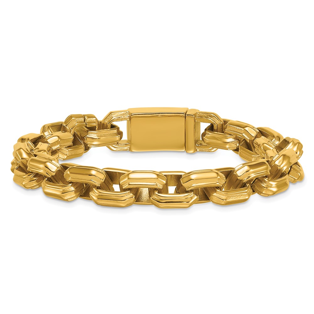 Stainless Steel Polished 11.5mm Yellow IP Fancy Rolo 8.5in Bracelet