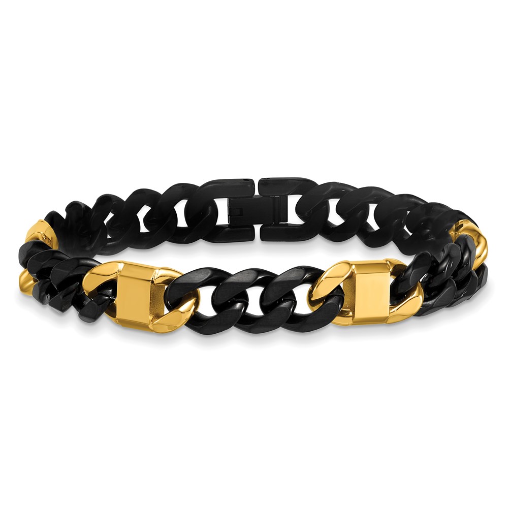 Stainless Steel Brushed/Polished Black/Yellow IP 10.5mm Cuban Link Bracelet