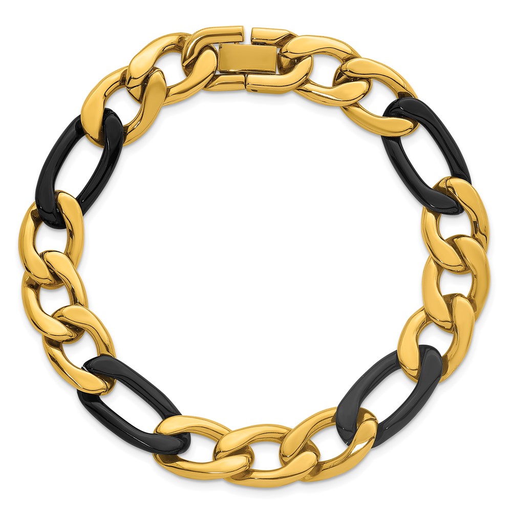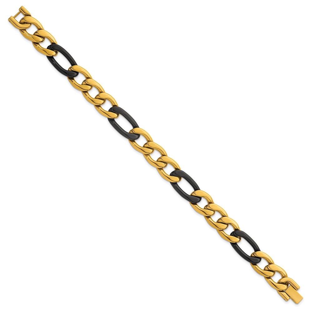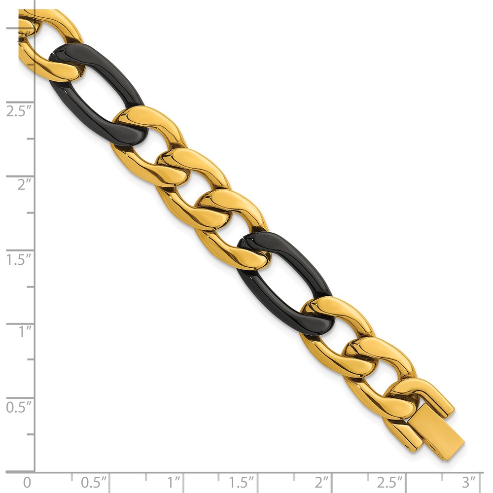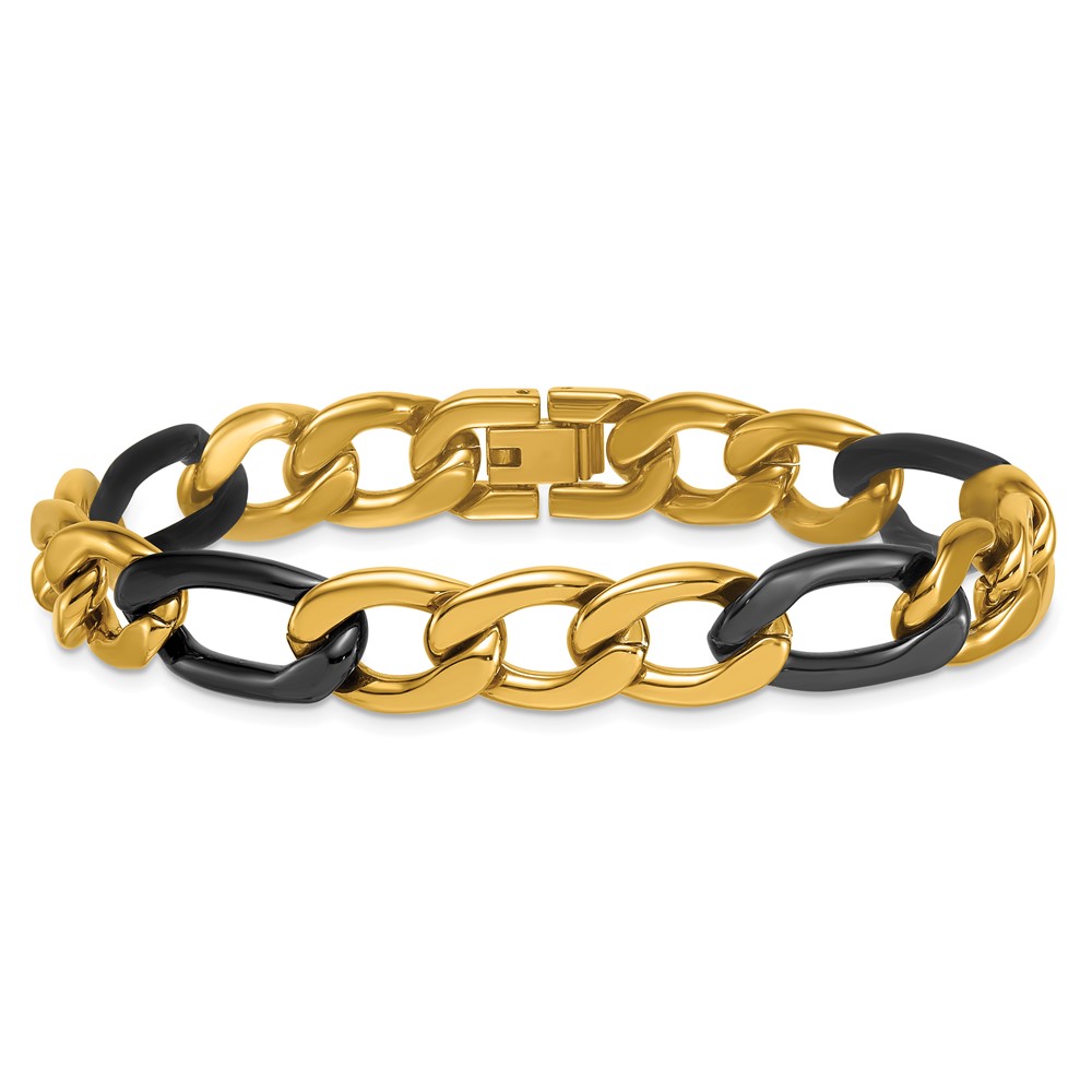StainlessSteel Polished Black and Yellow IP 11mm Figaro Link 8.5in Bracelet