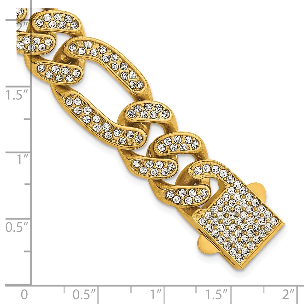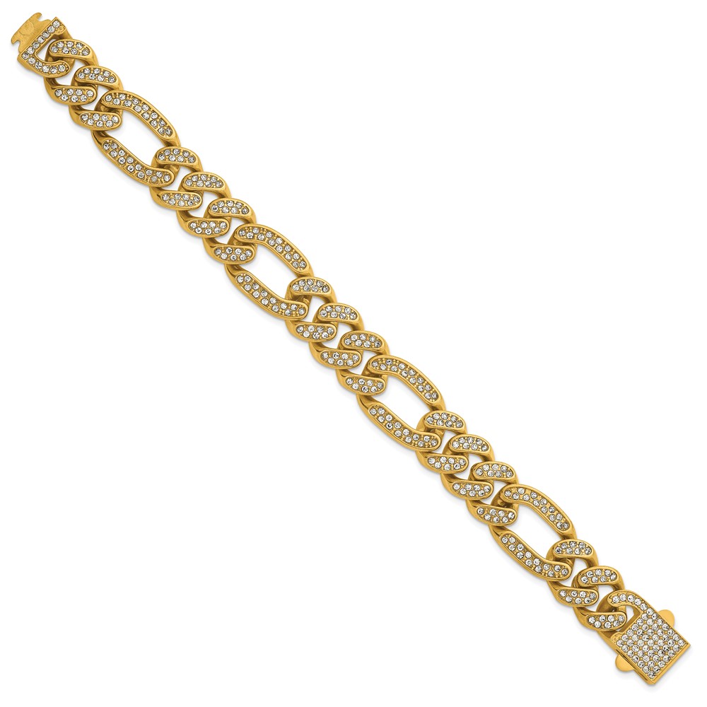 Stainless Steel Polished Yellow IP 16mm Full Crystal Figaro Link Bracelet