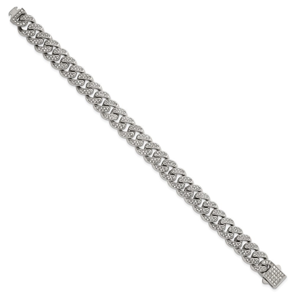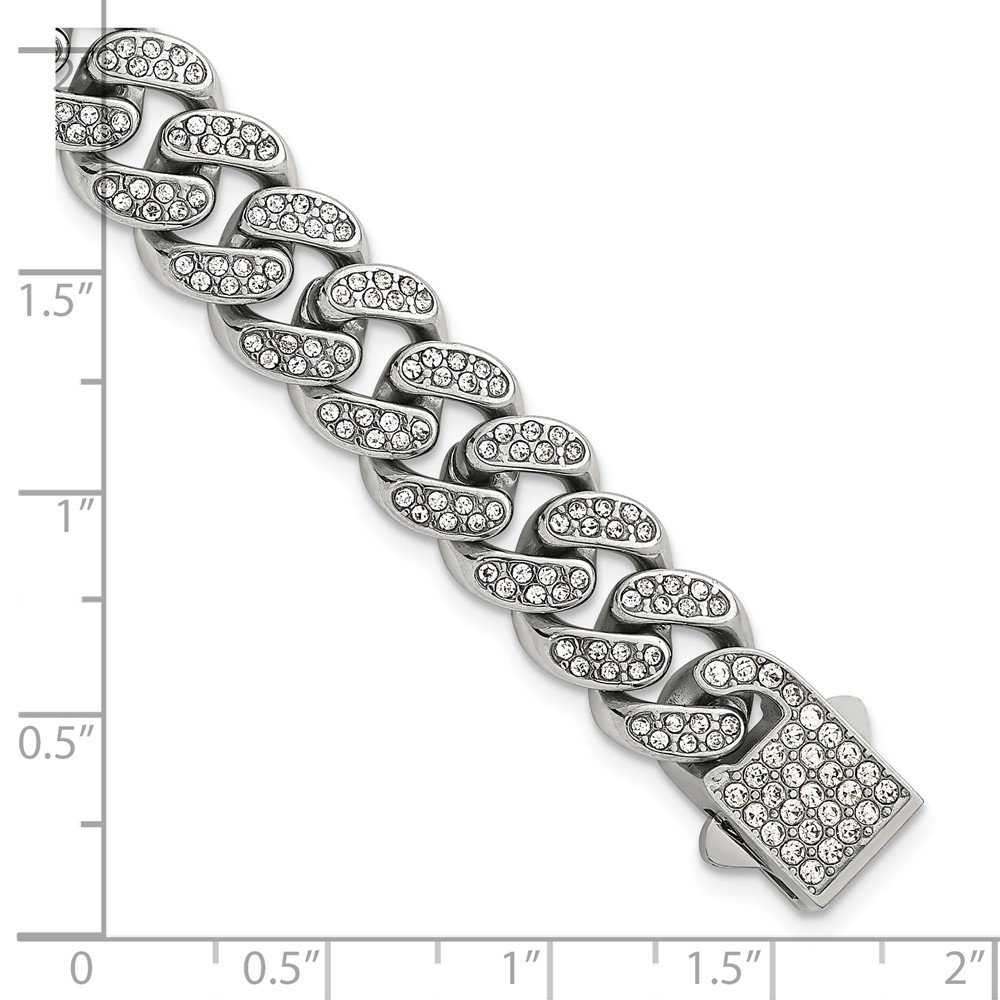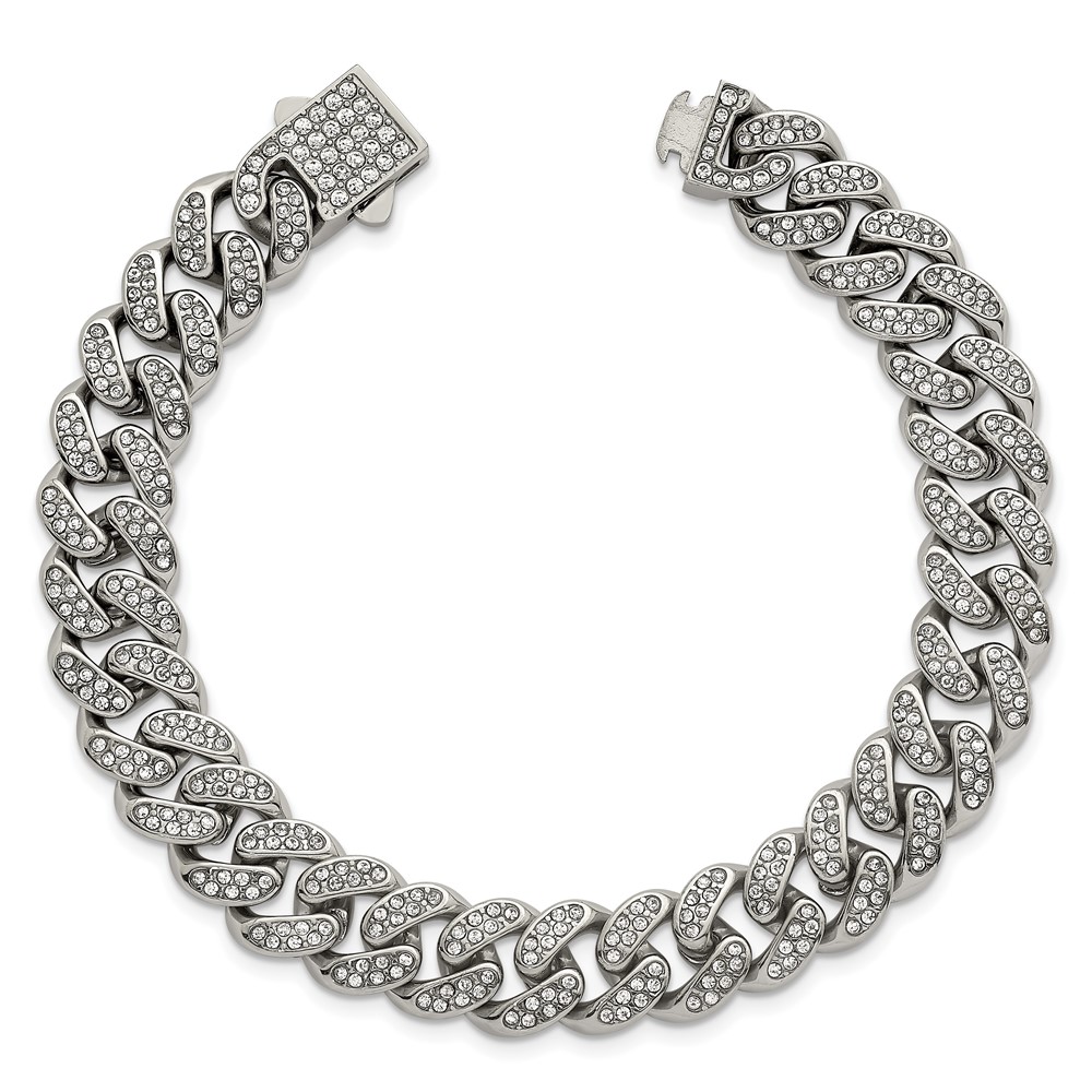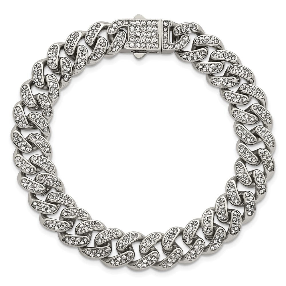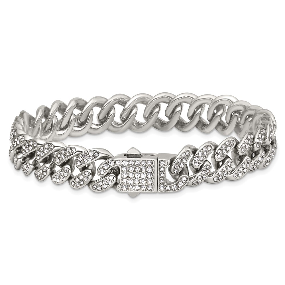 Stainless Steel Polished 11mm Full Crystal Curb Link 8in Bracelet