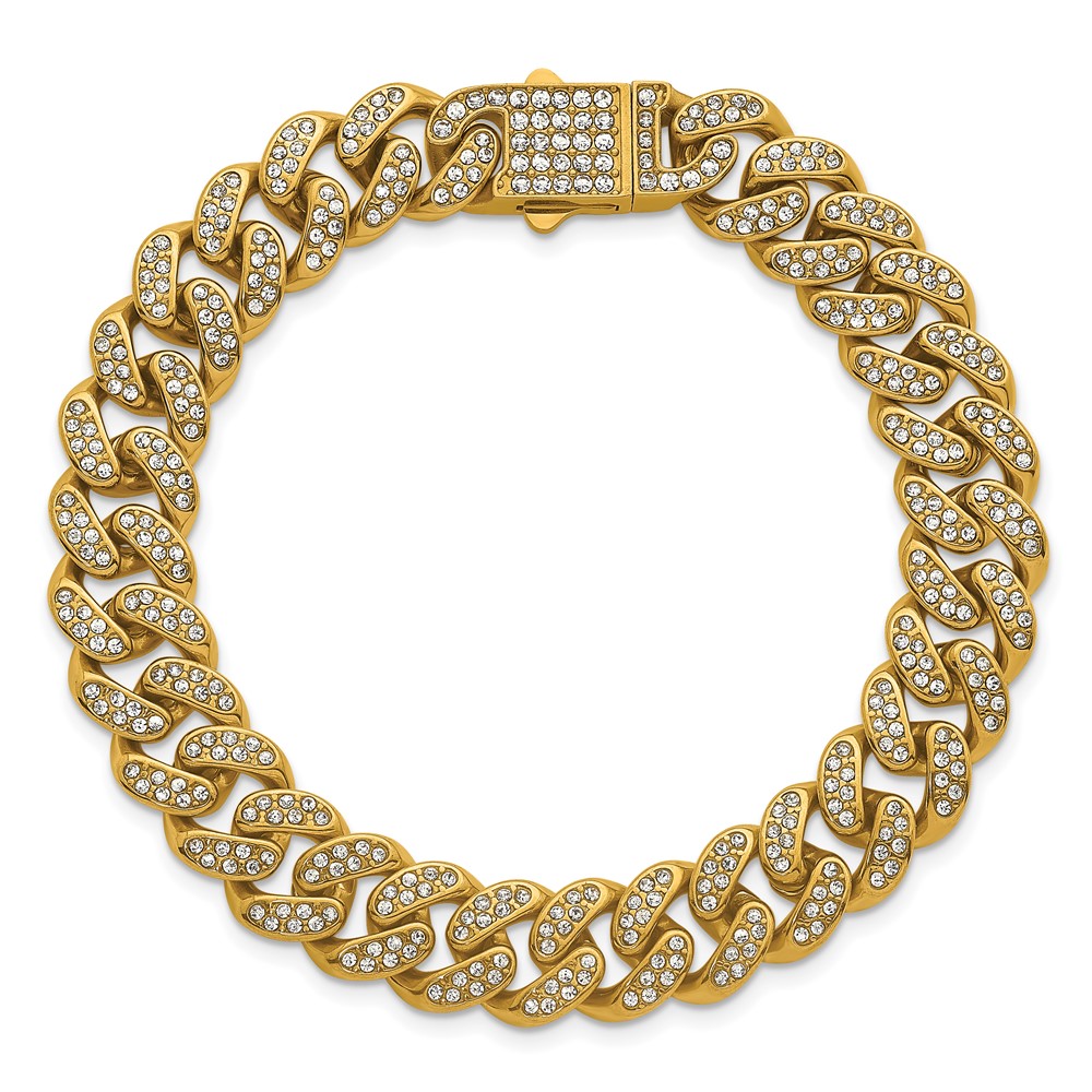Stainless Steel Polished Yellow IP 11mm Full Crystal Curb Link 8in Bracelet
