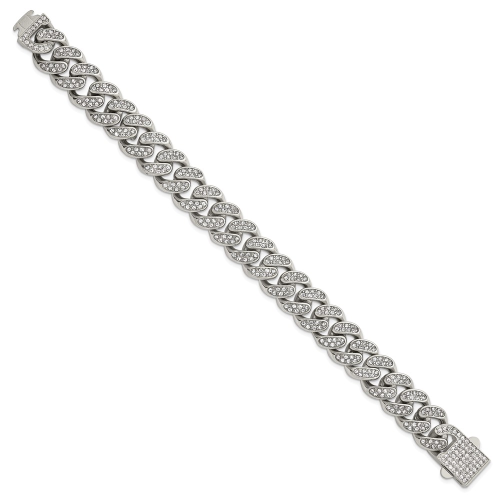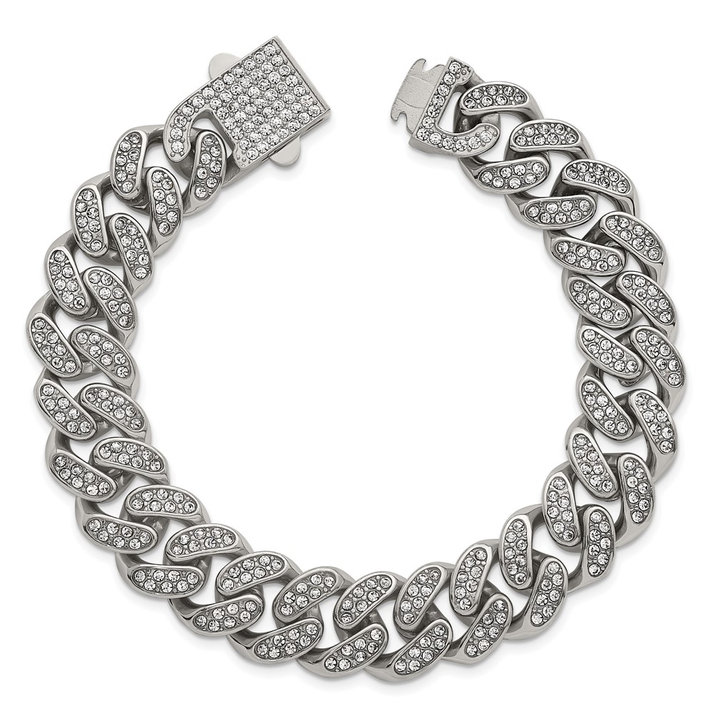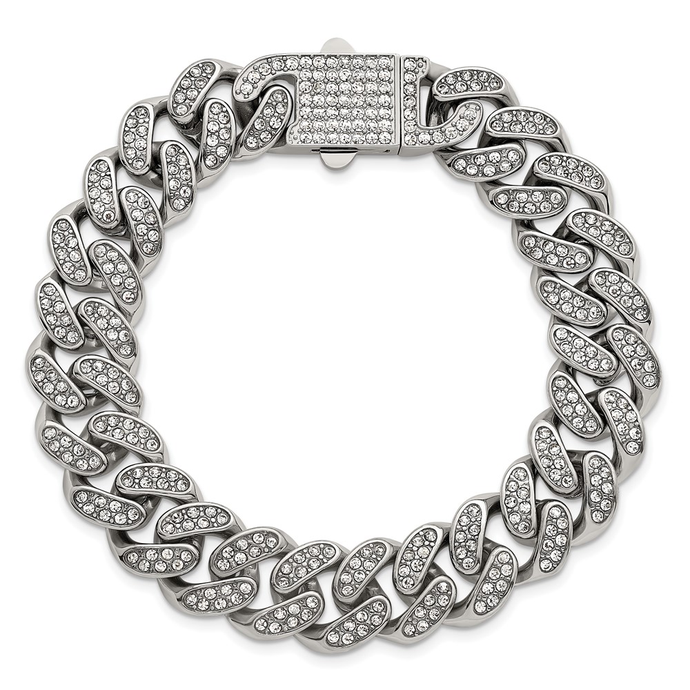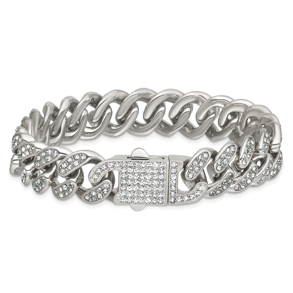 Stainless Steel Polished 15mm Full Crystal Curb Link 8.5in Bracelet