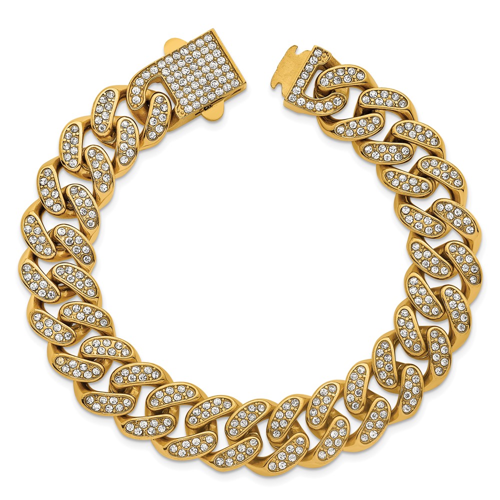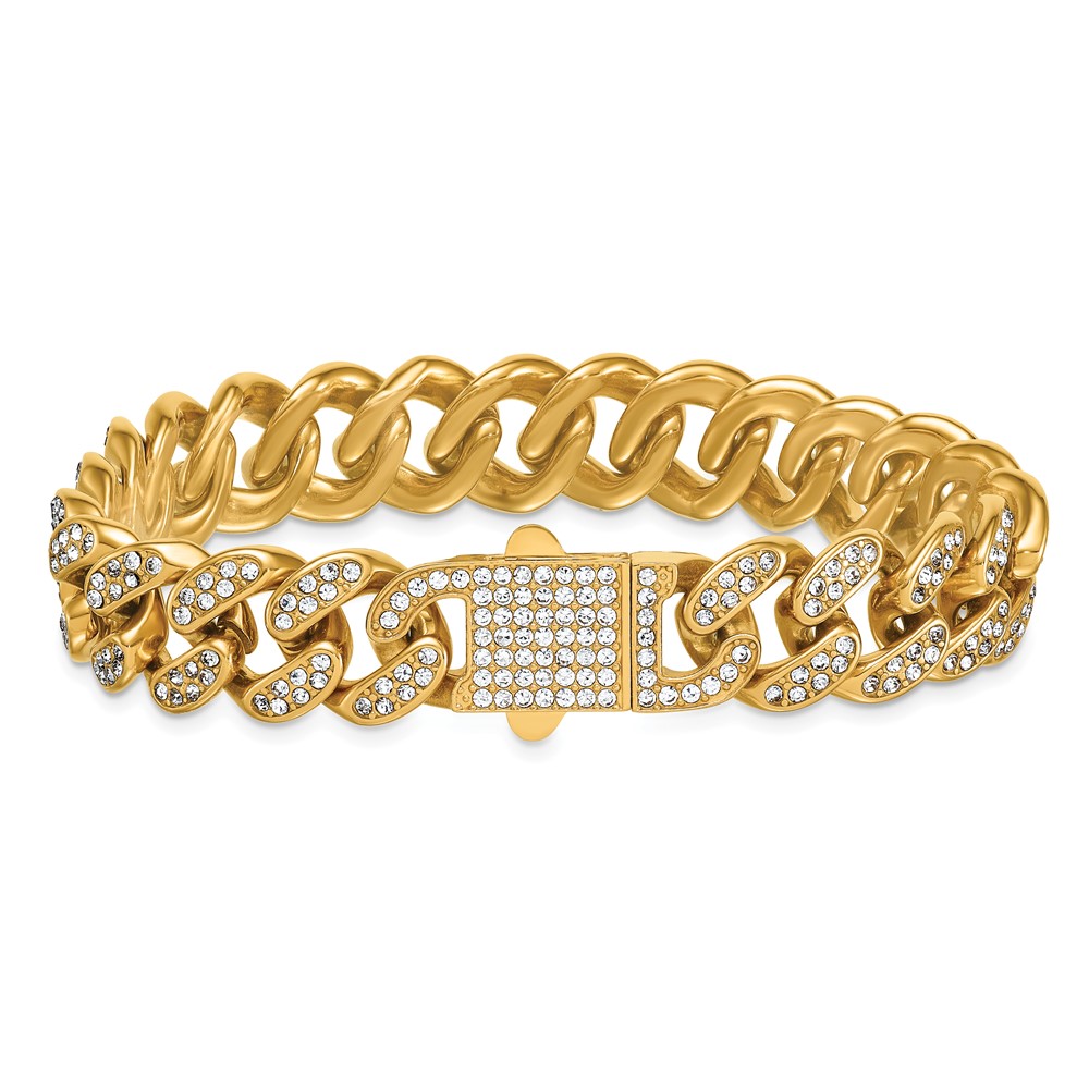 Stainless Steel Polished Yellow IP 15mm Full Crystal Curb Link Bracelet