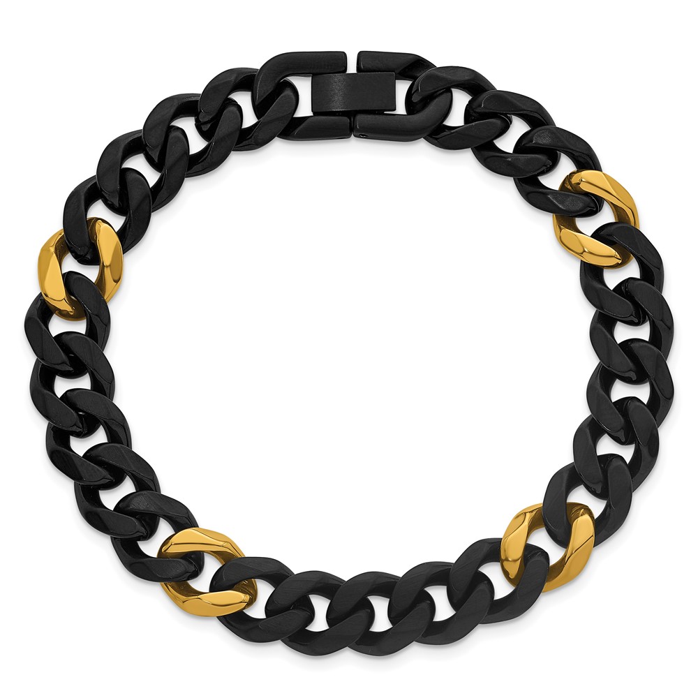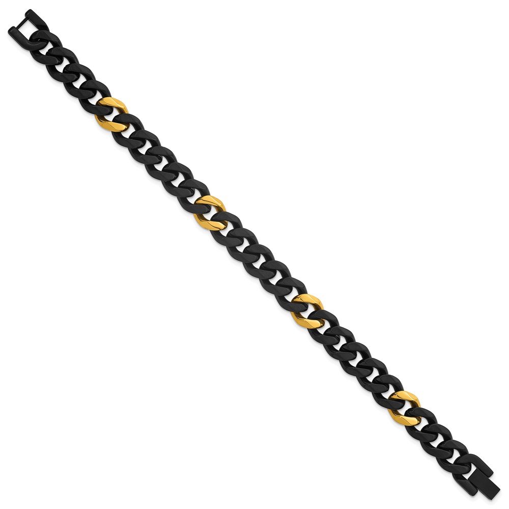 Stainless Steel Brushed/Polished Black/Yellow IP 10.5mm Cuban Link Bracelet