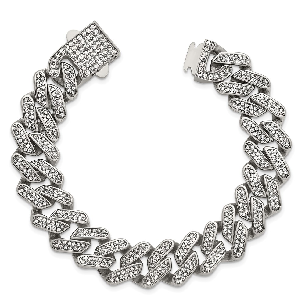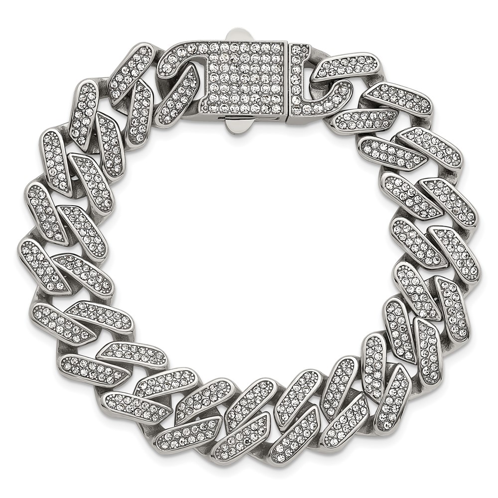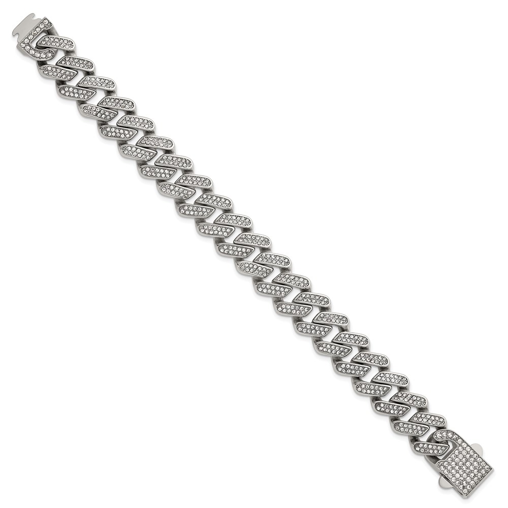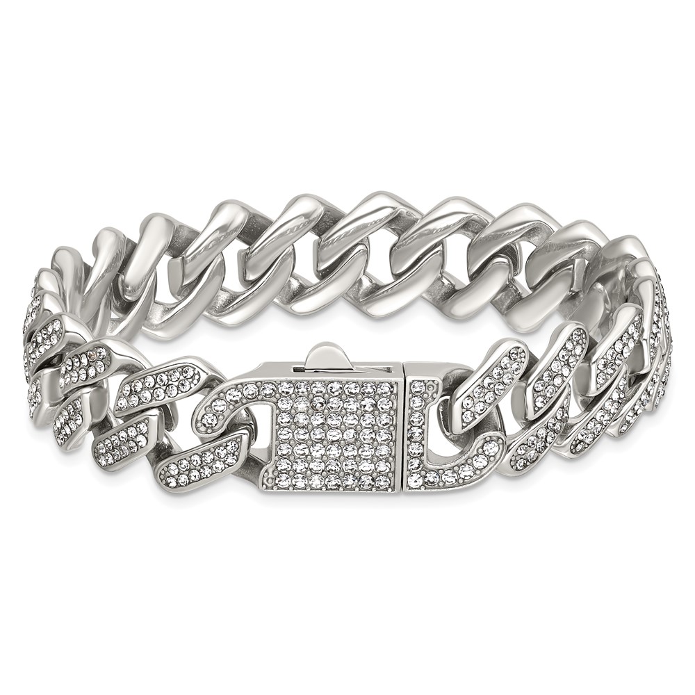 Stainless Steel Polished 15mm Full Crystal Cuban Link 7.75in Bracelet