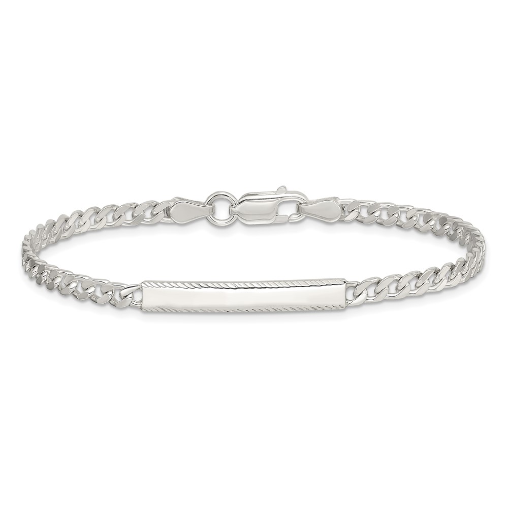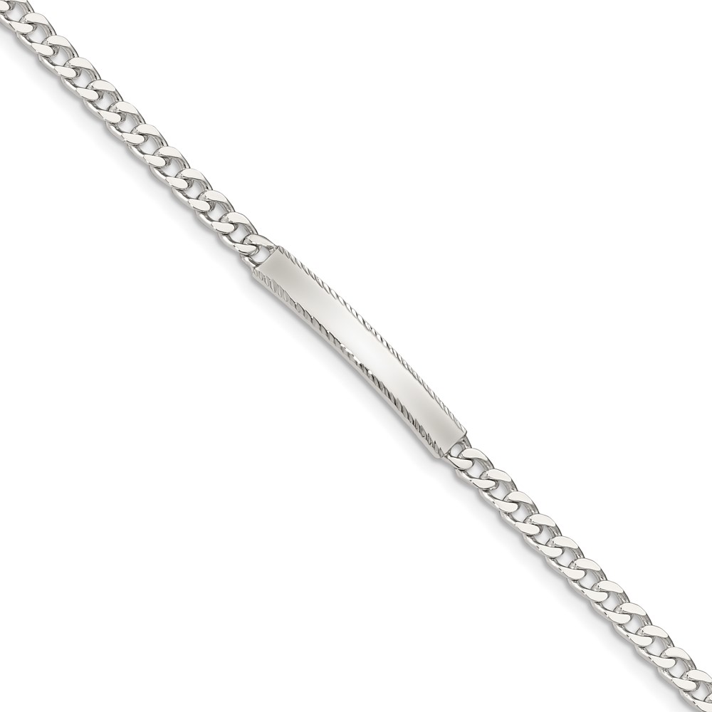 Sterling Silver Diamond-cut Engraveable Curb Link ID Bracelet