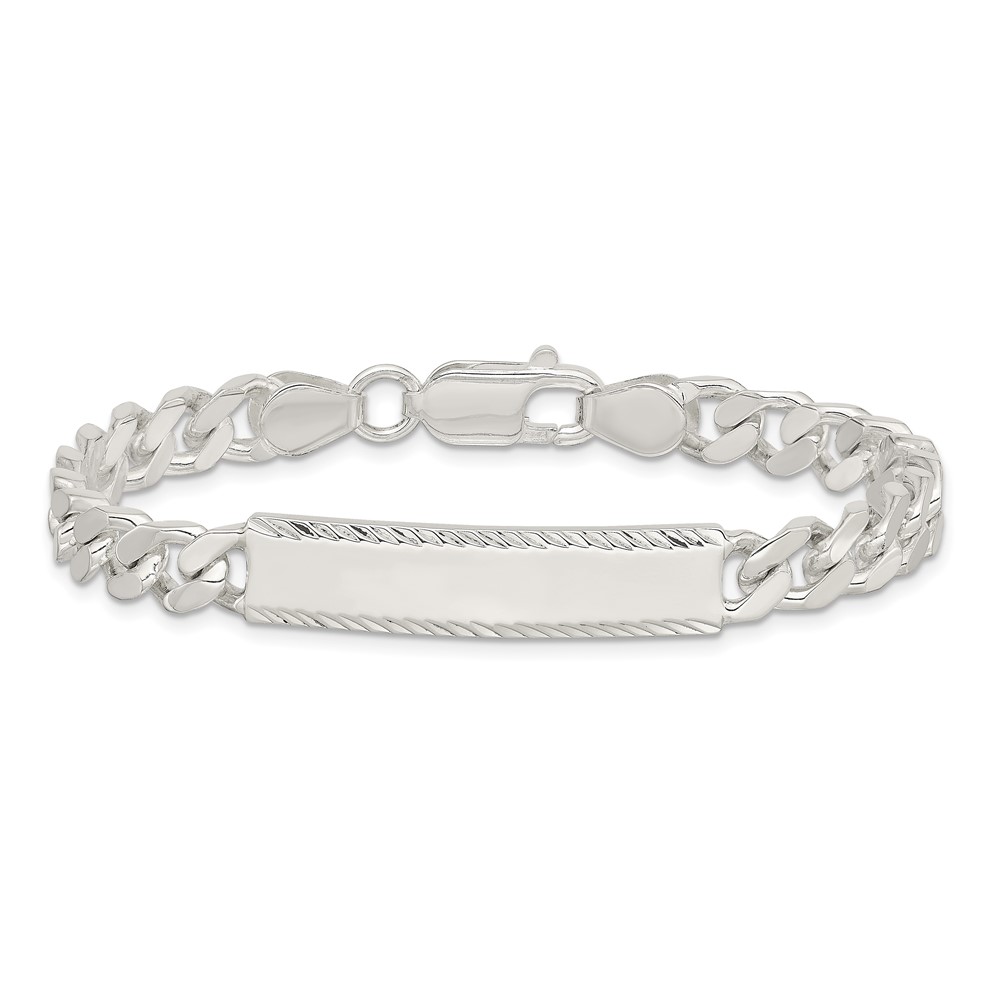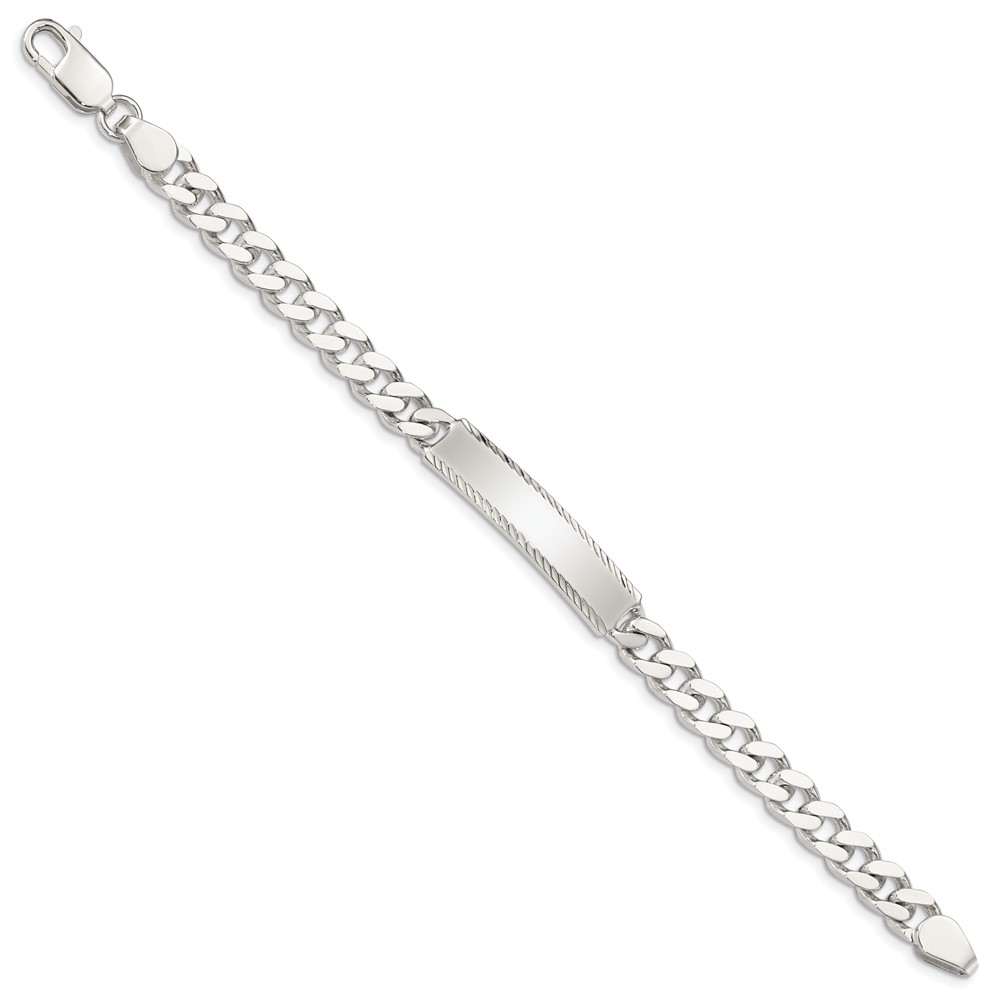 Sterling Silver Diamond-cut Engraveable Curb Link ID Bracelet