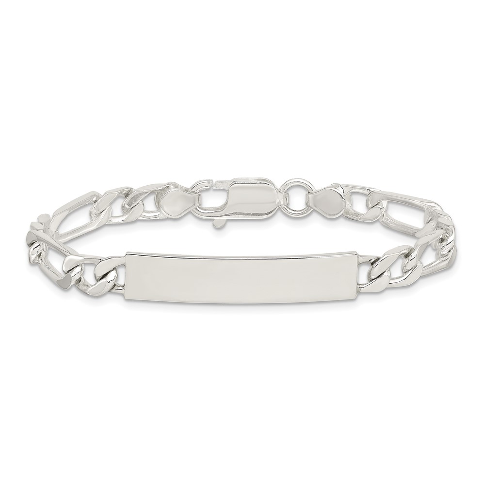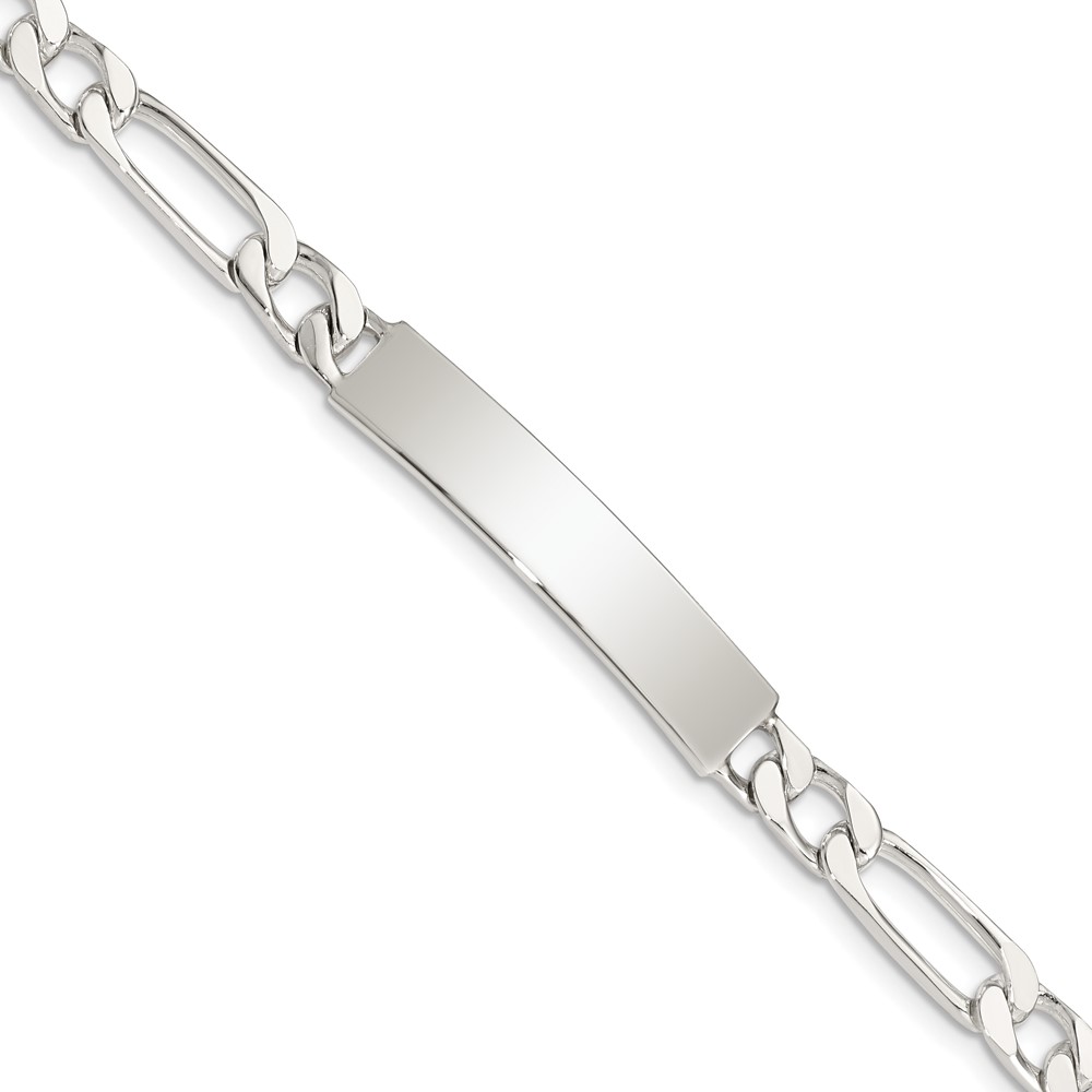 Sterling Silver 7inch Polished Engraveable Figaro Link ID Bracelet